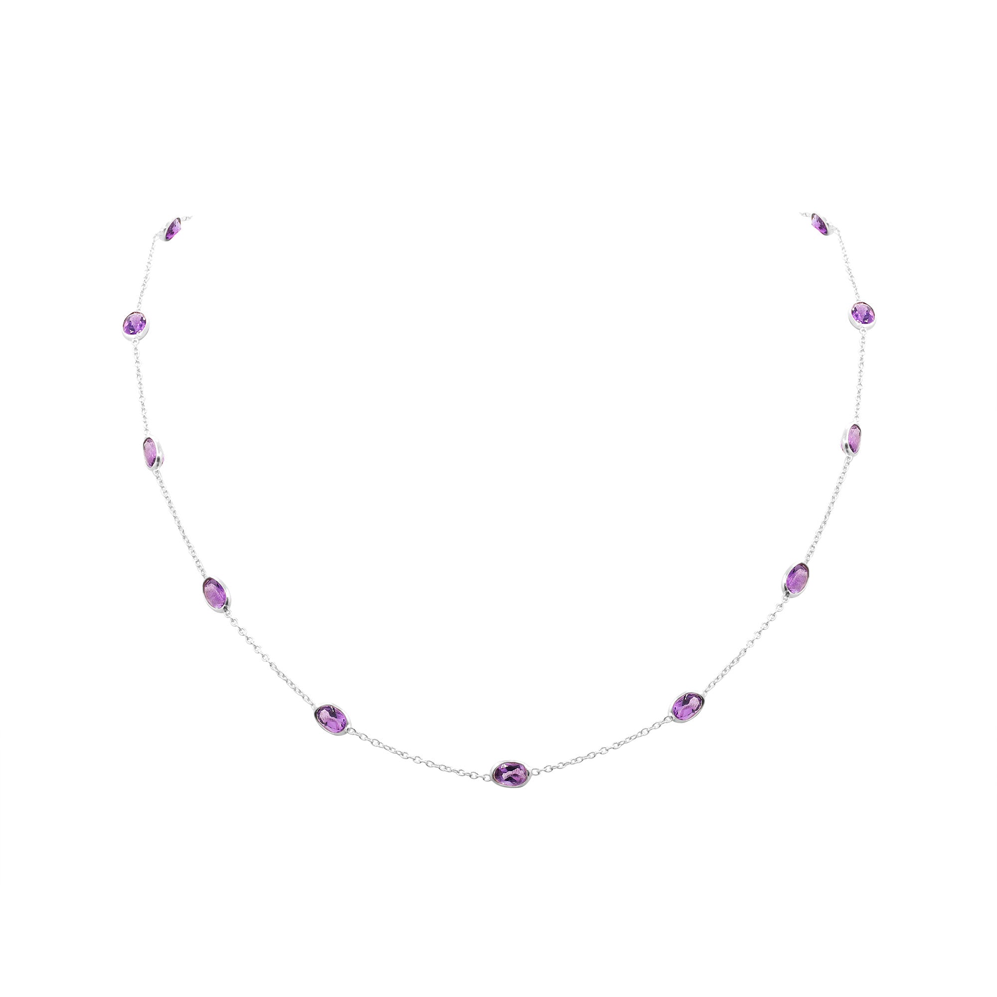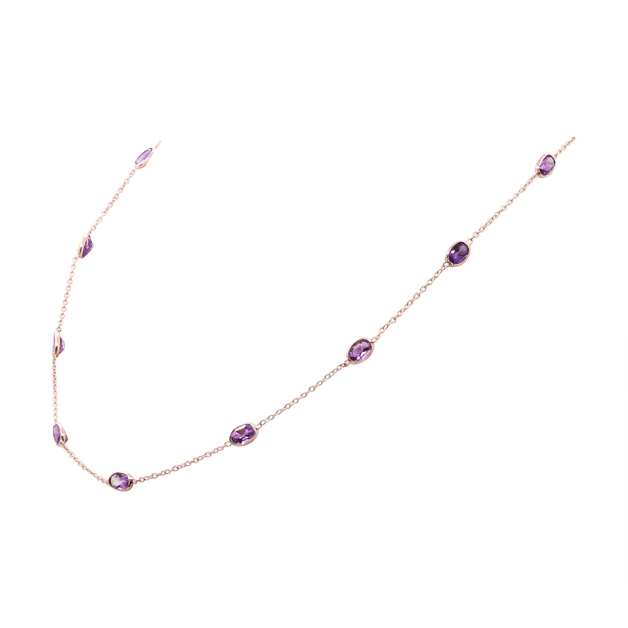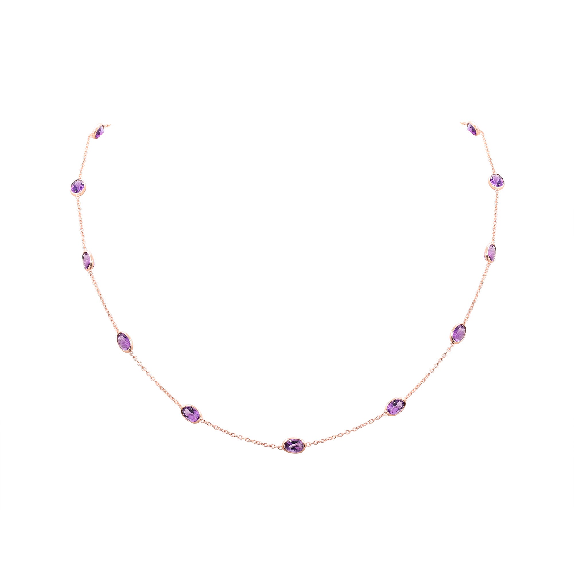 925 Sterling Silver Natural Amethyst Gemstone Rose Gold Plated Necklace
