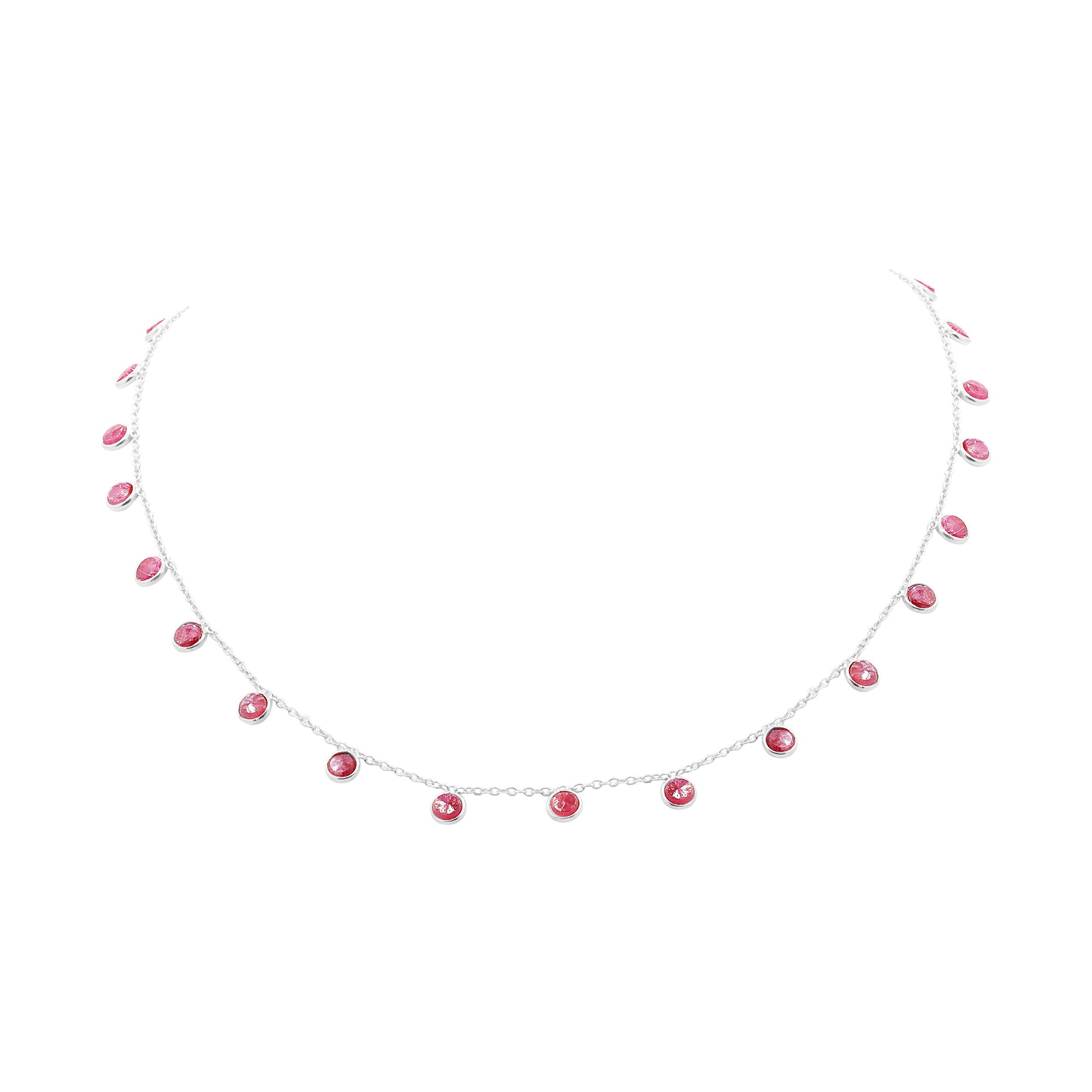 Natural Round Cut Ruby Gemstone 925 Sterling Silver Necklace For Gift
