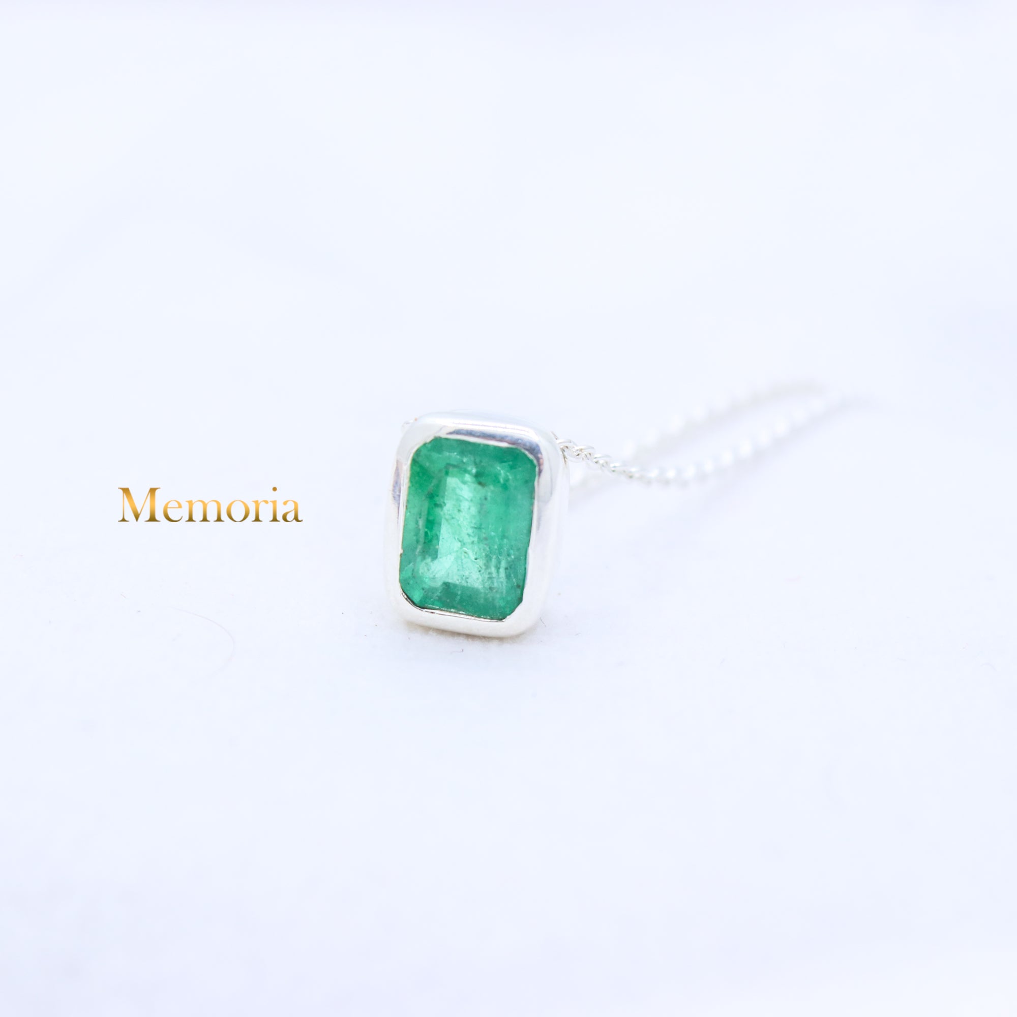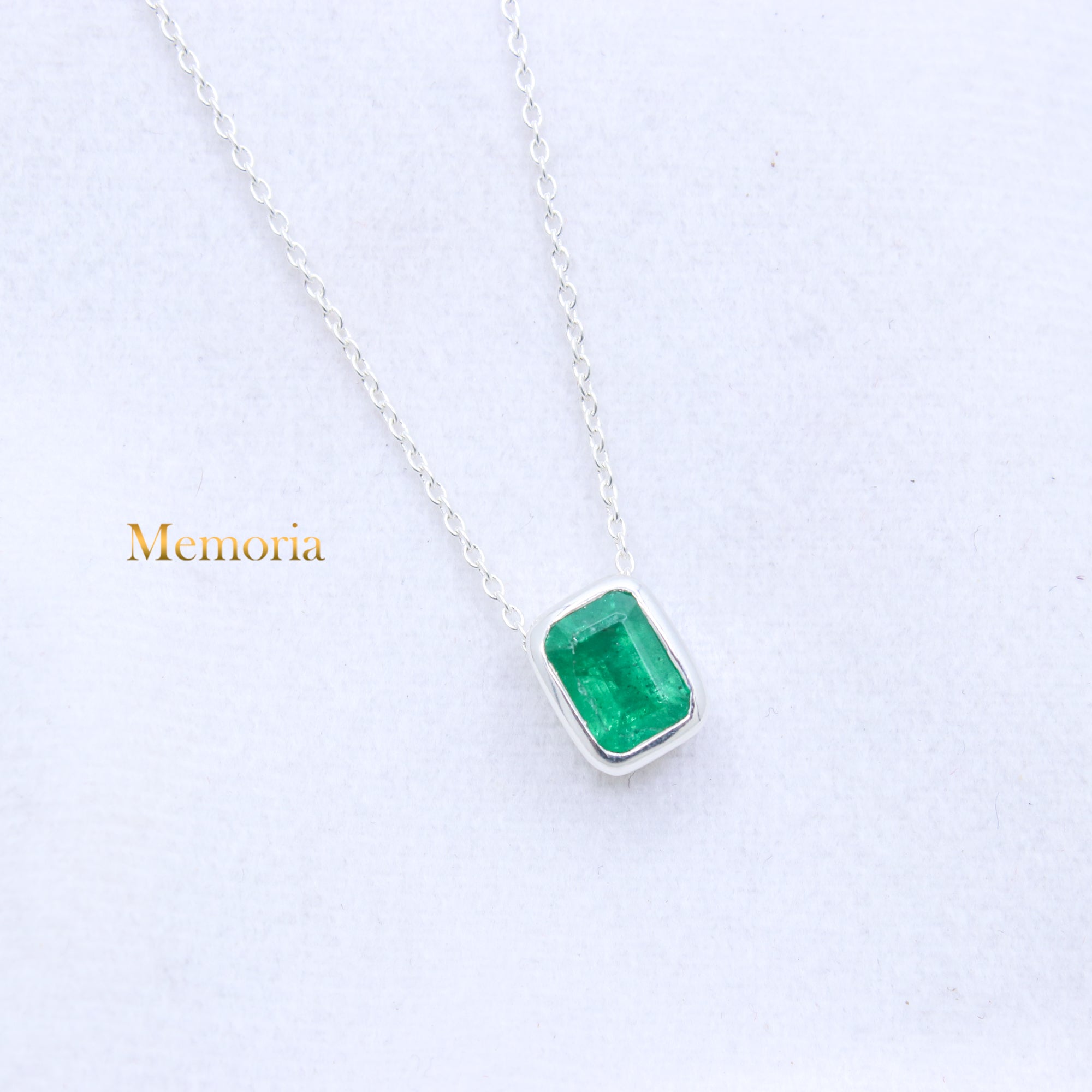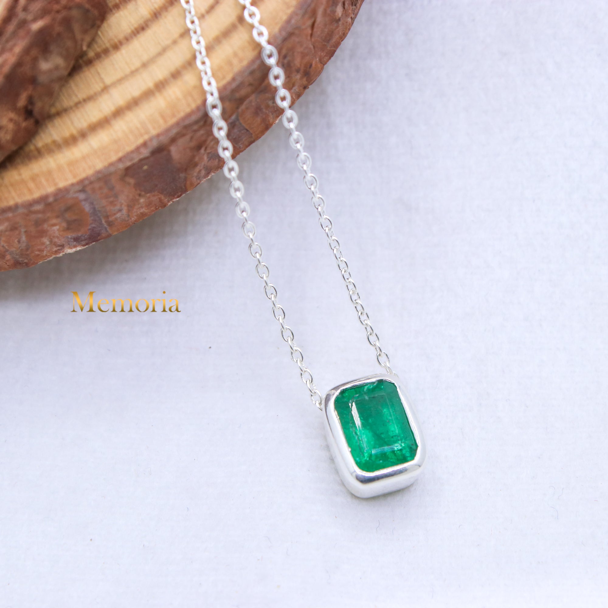 Natural Emerald Gemstone 925 Silver Necklace
