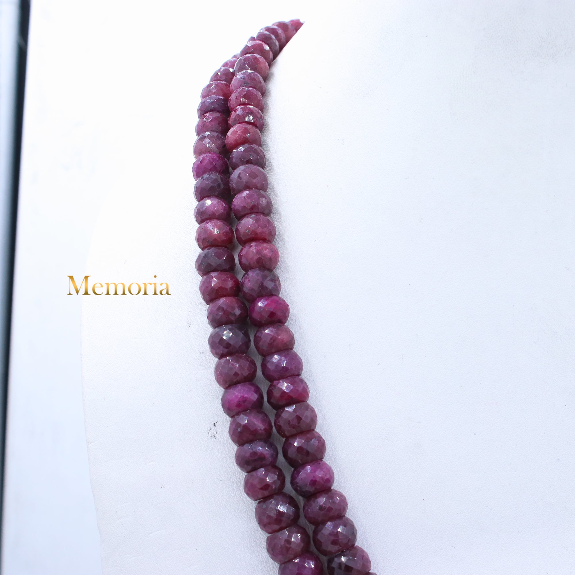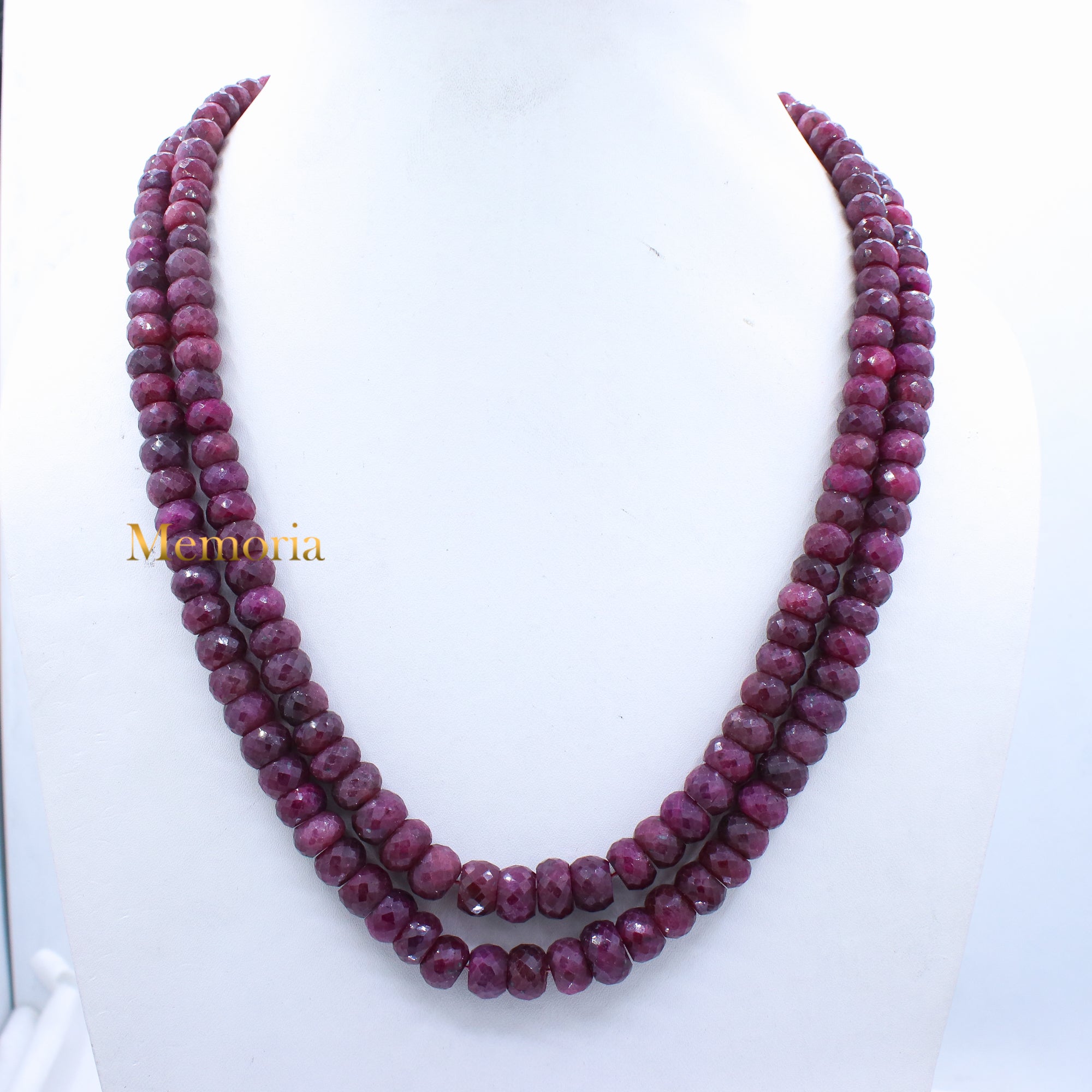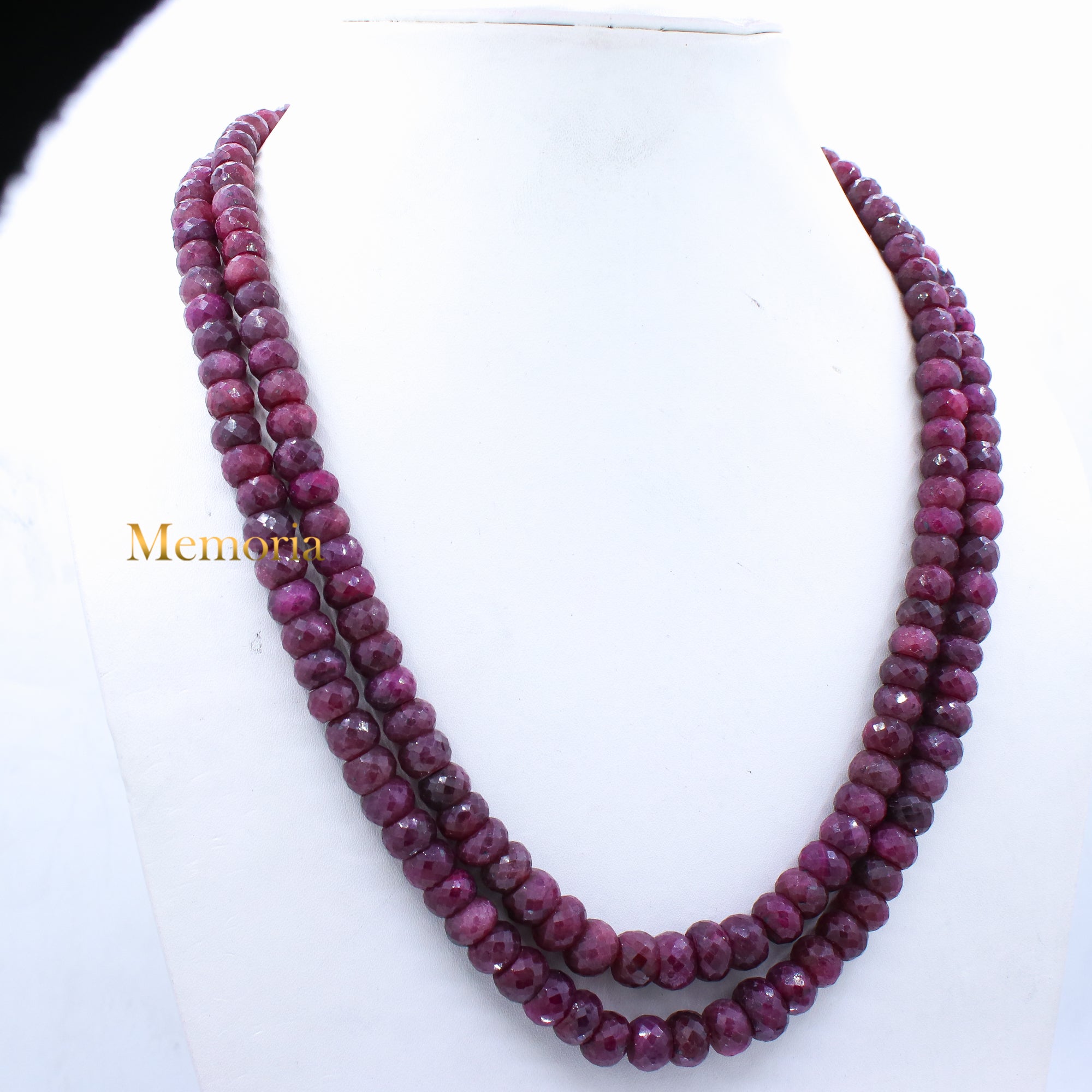 Certified 2 Line Natural Ruby Round Faceted Spiritual Healing Gemstone Beads Strand Necklace