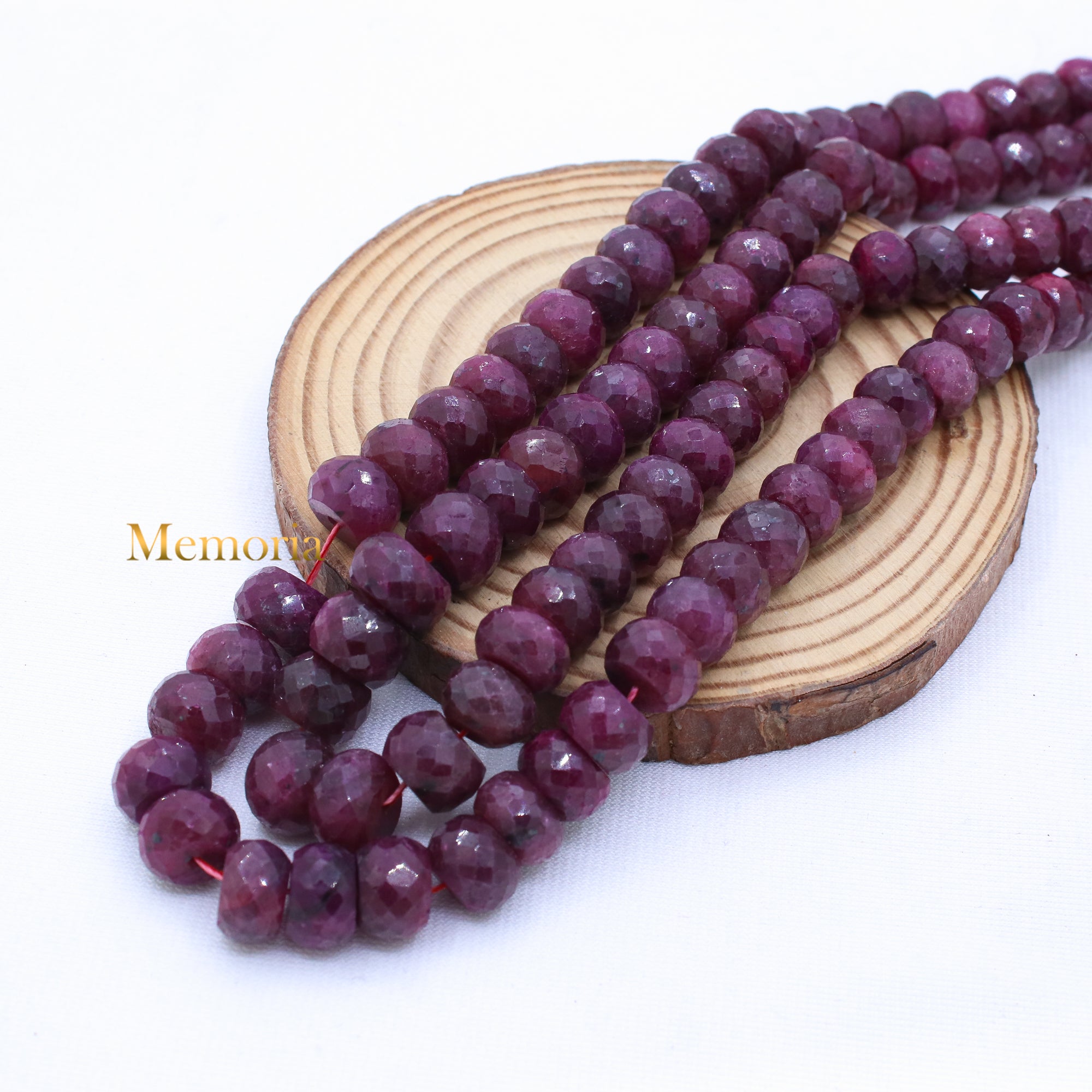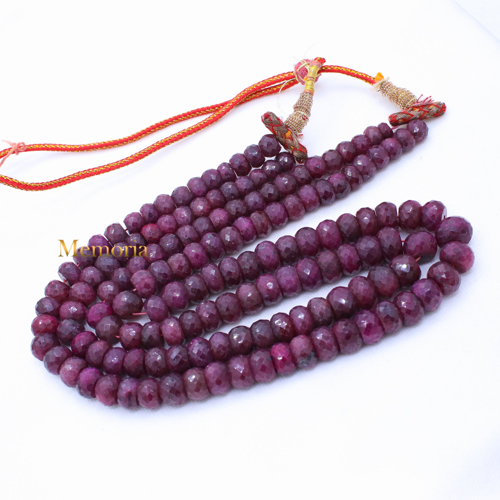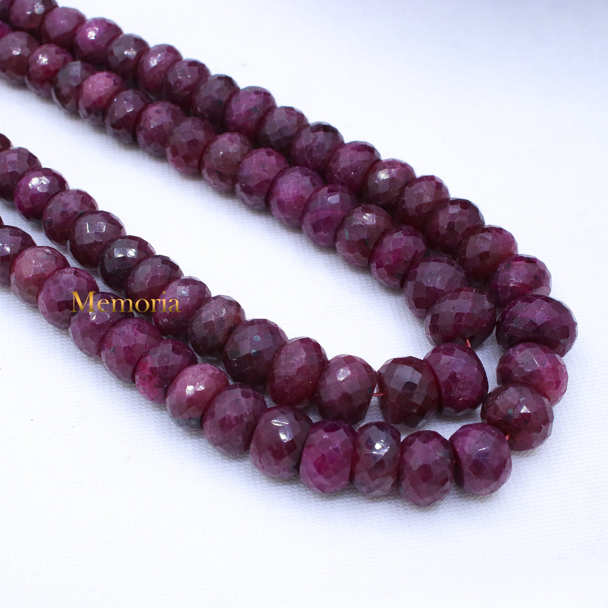Certified 2 Line Natural Ruby Round Faceted Spiritual Healing Gemstone Beads Strand Necklace