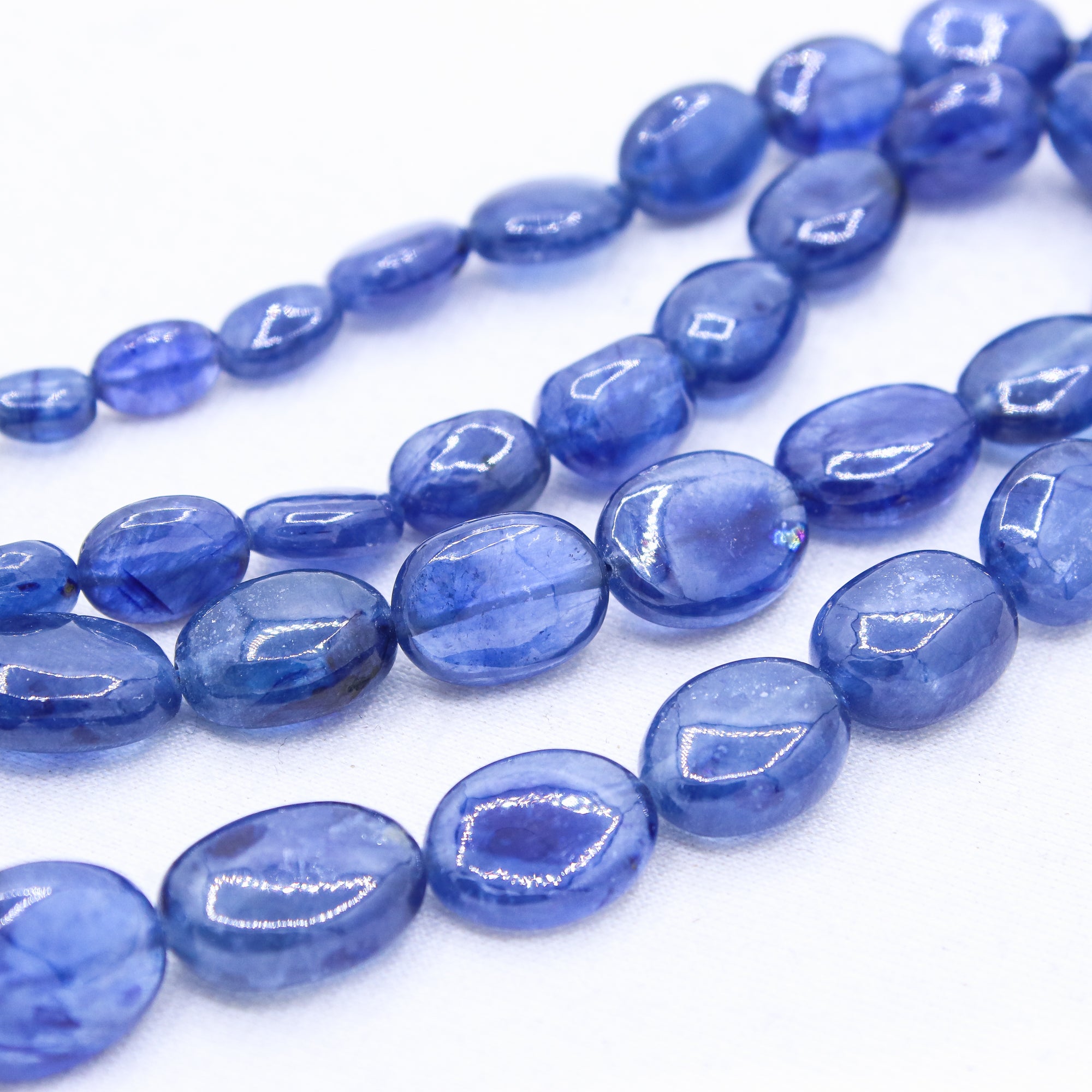 1 Layered Natural Blue Sapphire Oval Cabochon Cut Spiritual Healing Gemstone Beads Strand Necklace