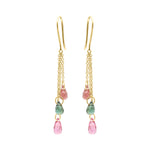 Natural Tear Drop Multi Tourmaline Gemstone 14k Gold Designer Drop Earring