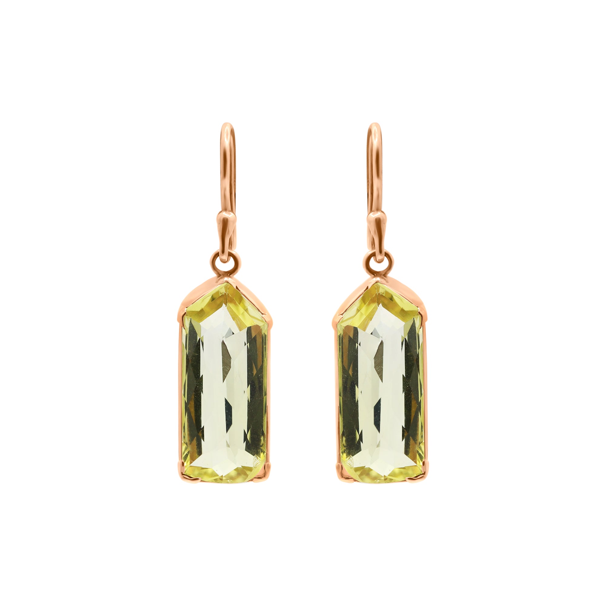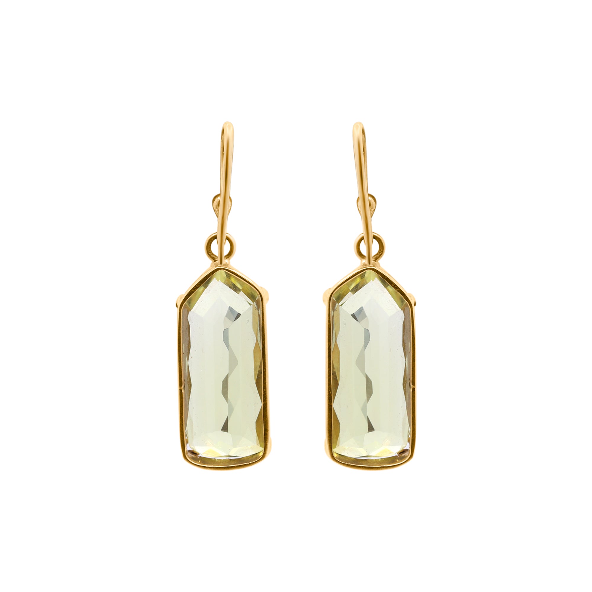 Natural Lemon Quartz Gemstone 18k Gold Handmade Earring