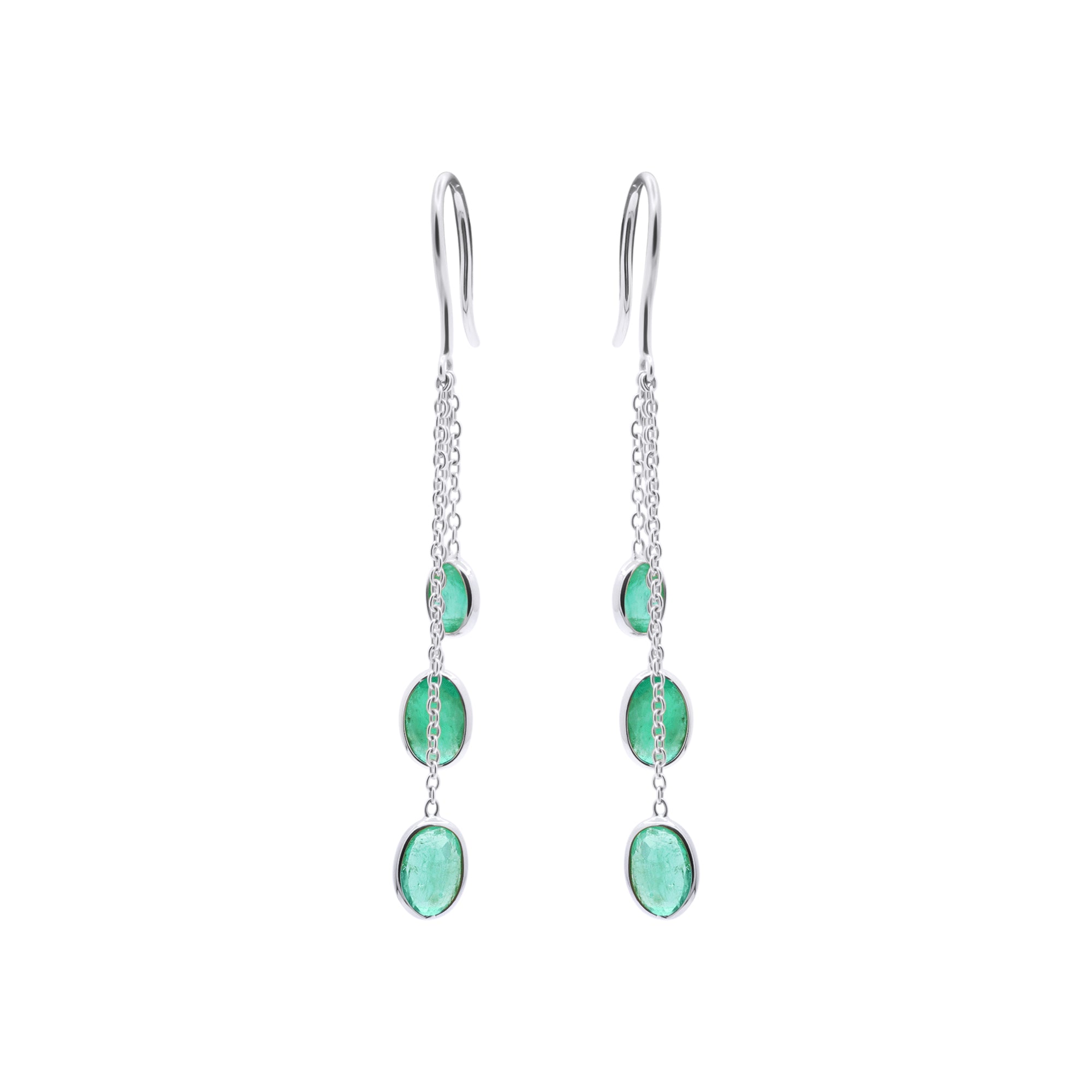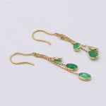 Natural Oval Cut Emerald Energy Healing Gemstone 14k Gold Dangle Earring