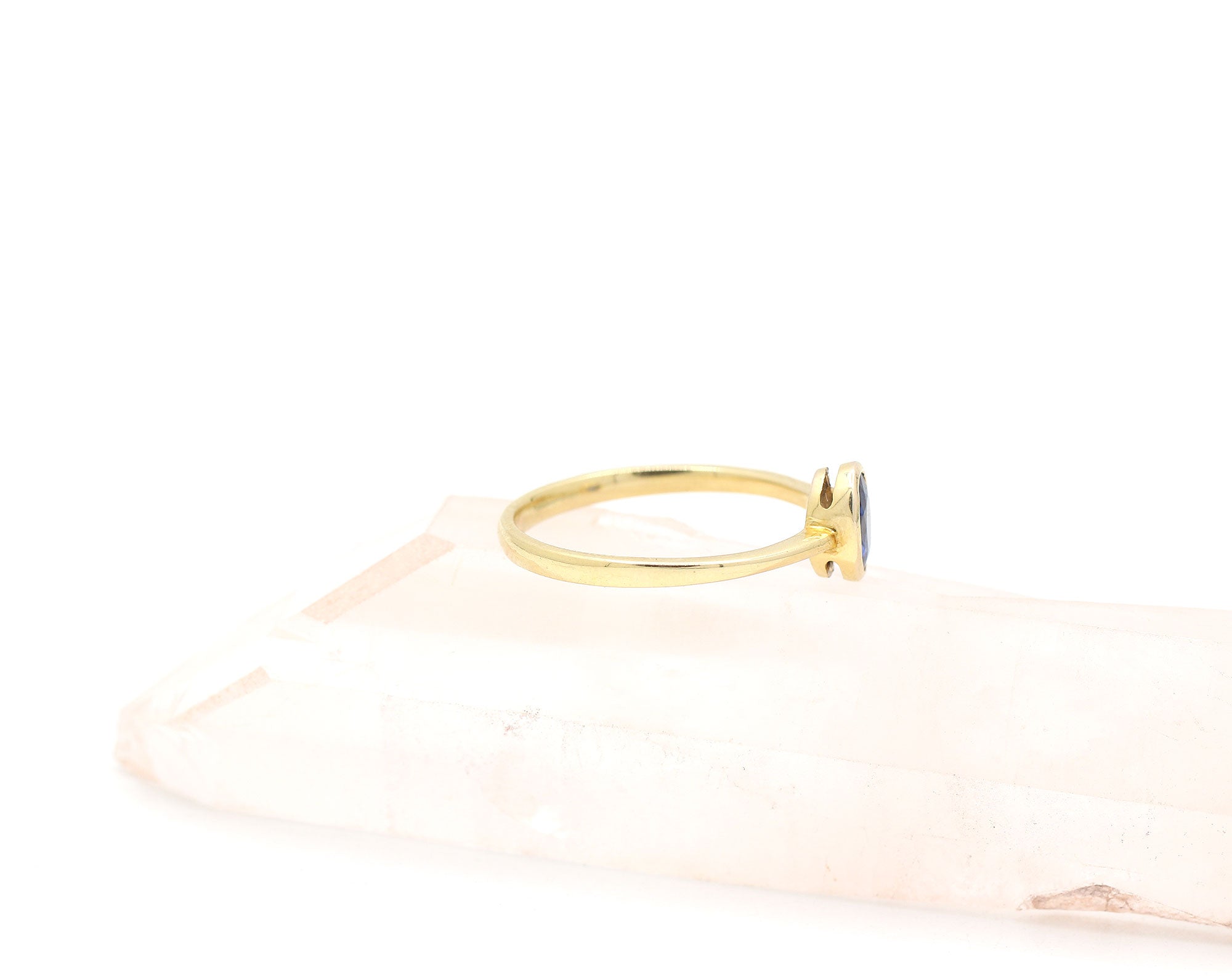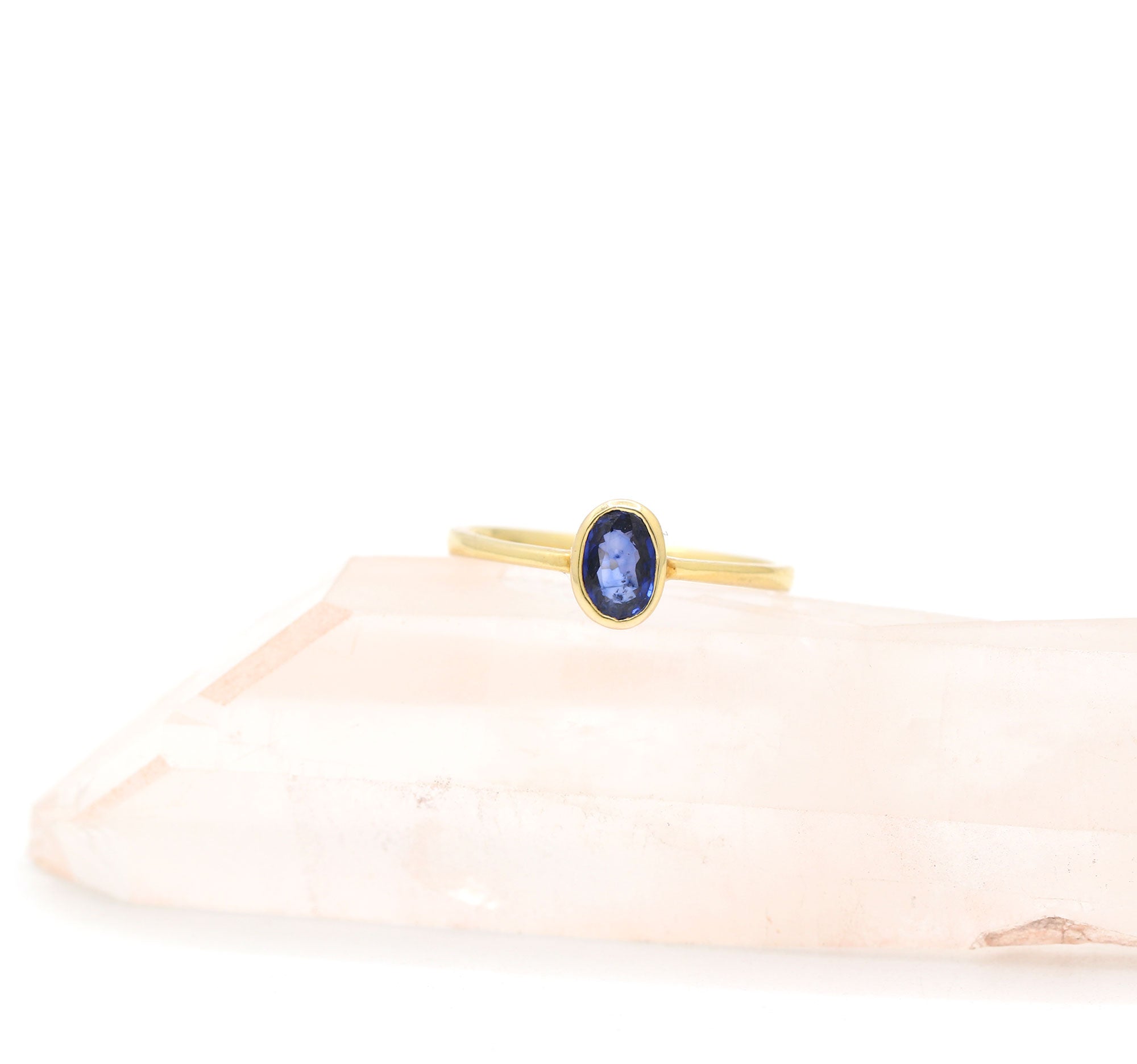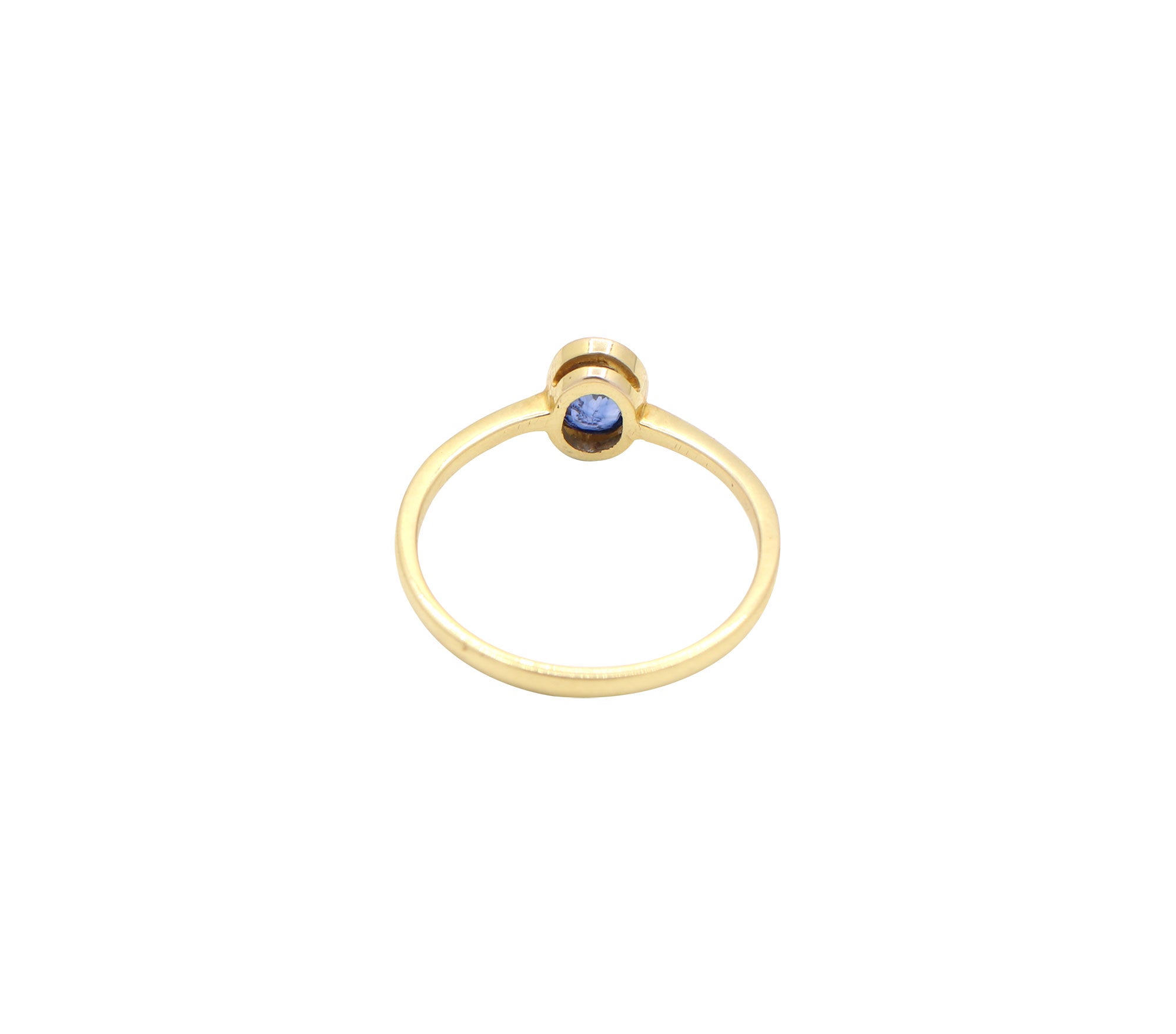 Solid Yellow Gold Oval Blue Sapphire Ring