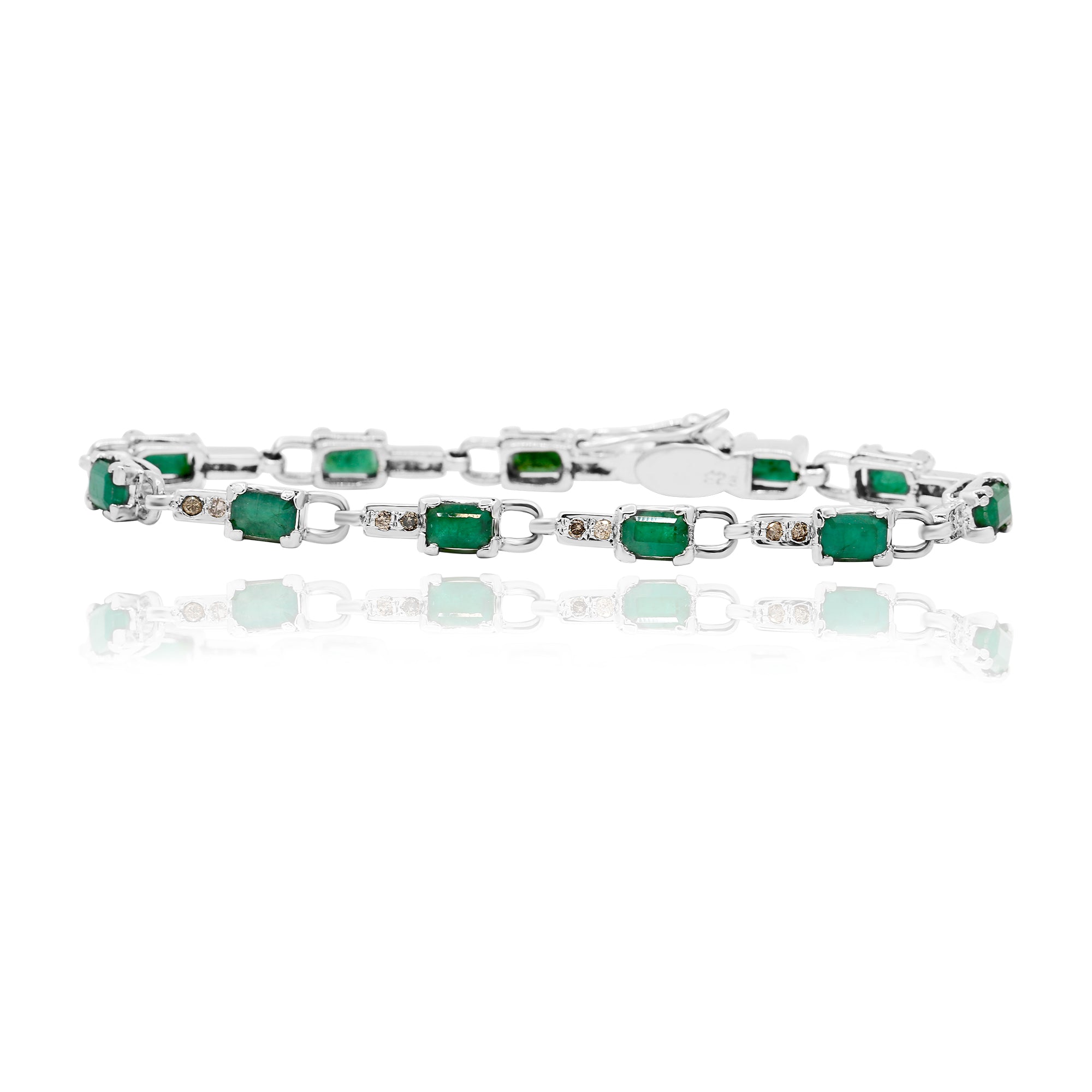 Item Type: 925 Silver Emerald And Diamond Bracelet