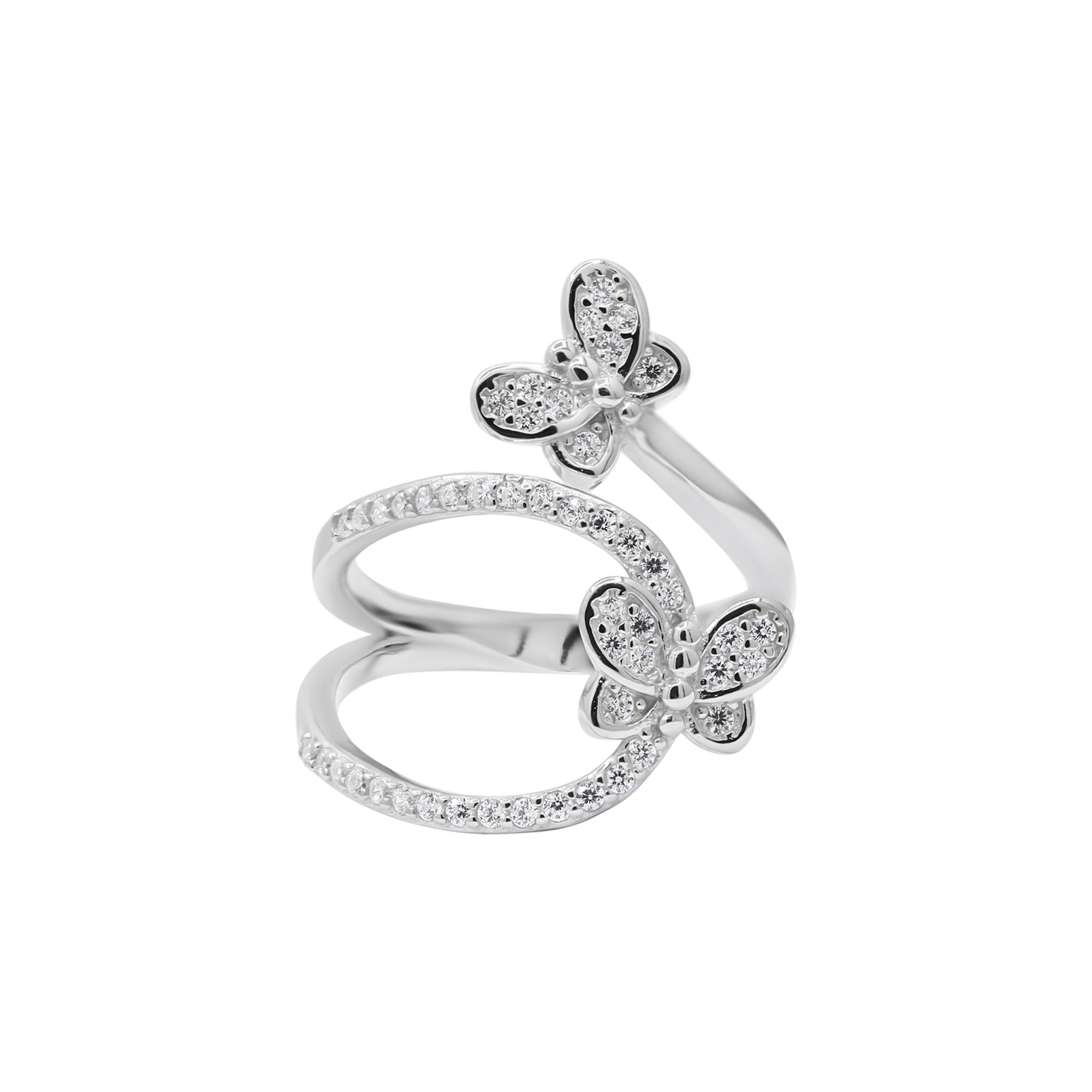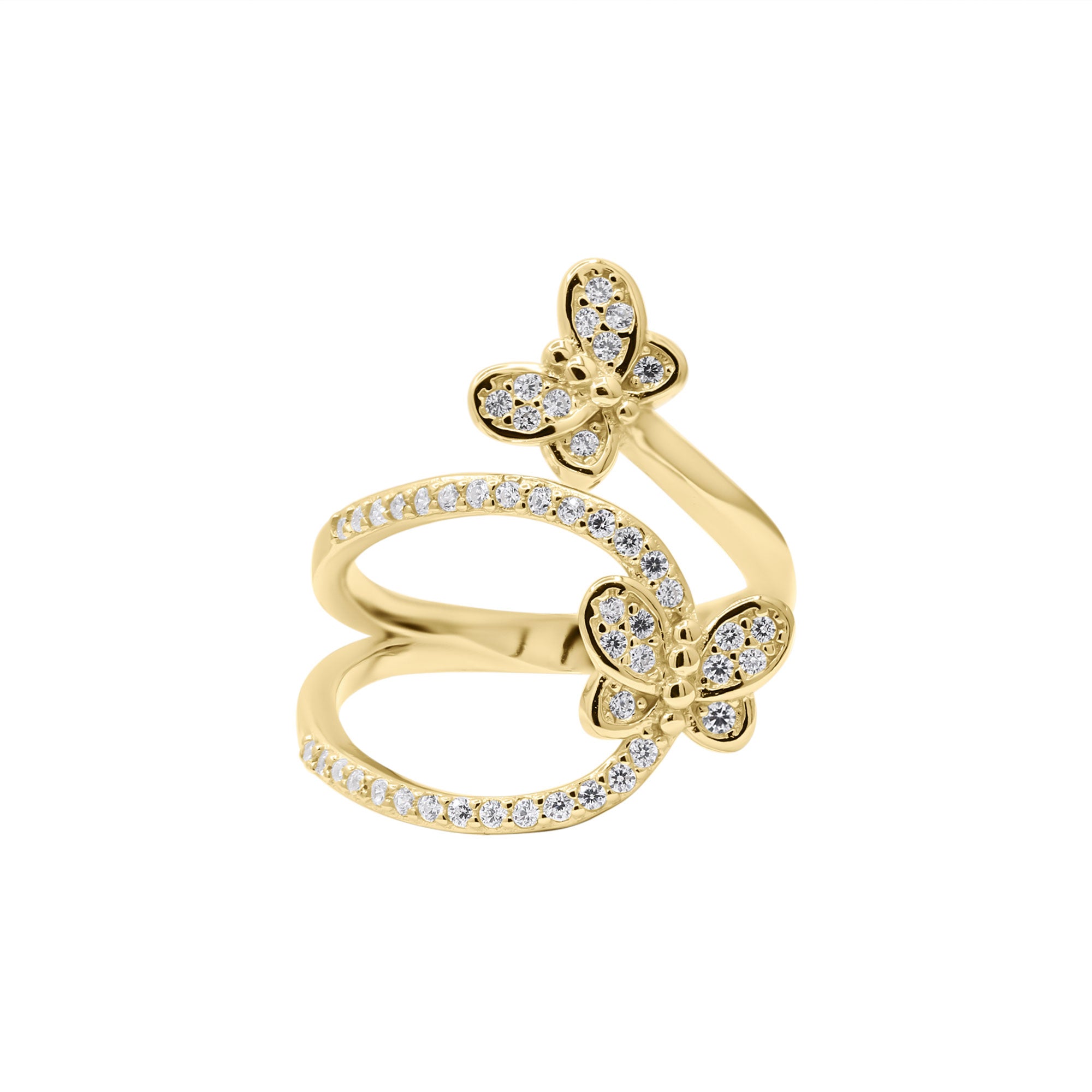 Butterfly Cubic Zircon 925 Silver Gold Plated Adjustable Women Ring