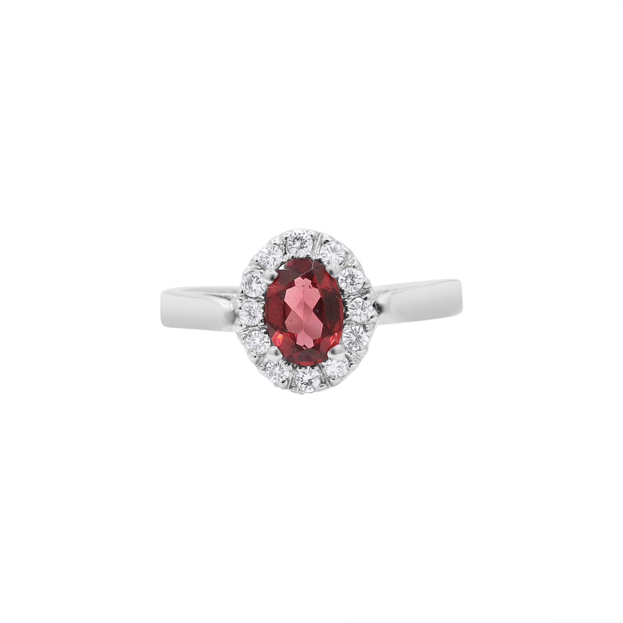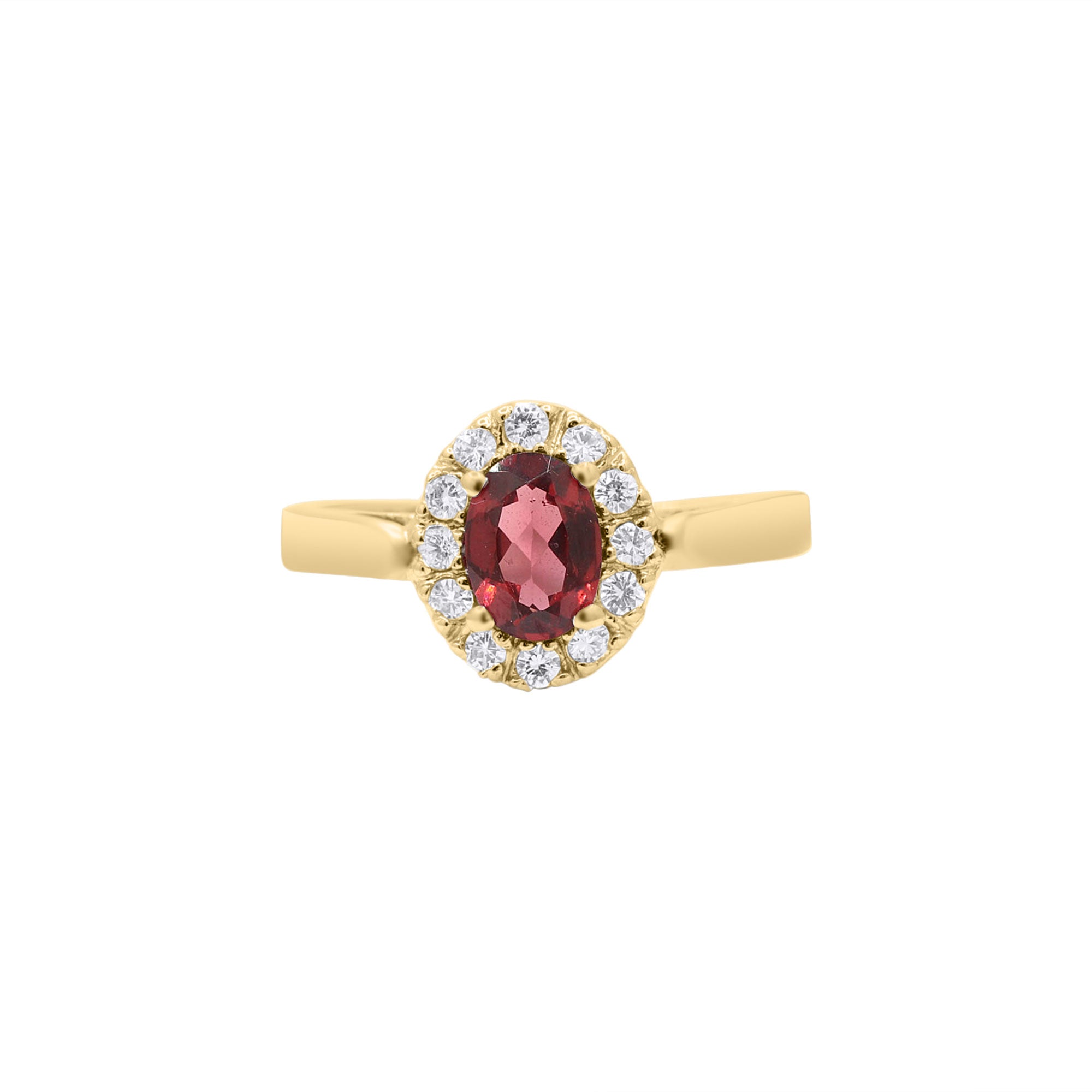 Natural Garnet and Cubic Zircon Gold plated 925 Silver Ring