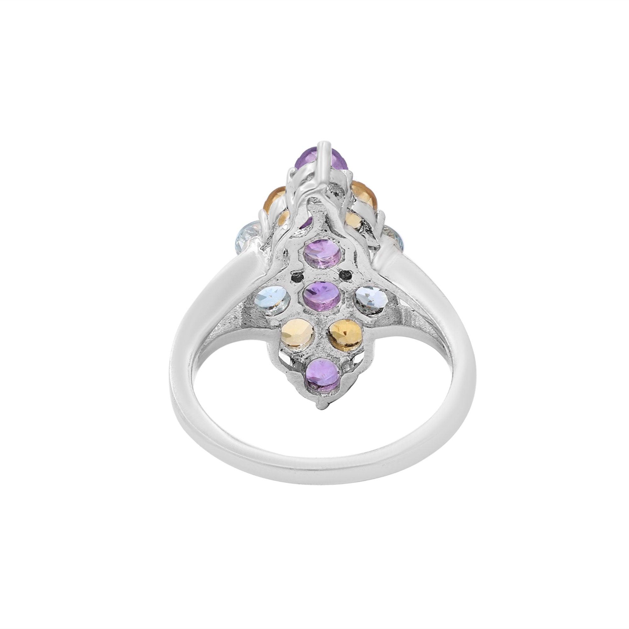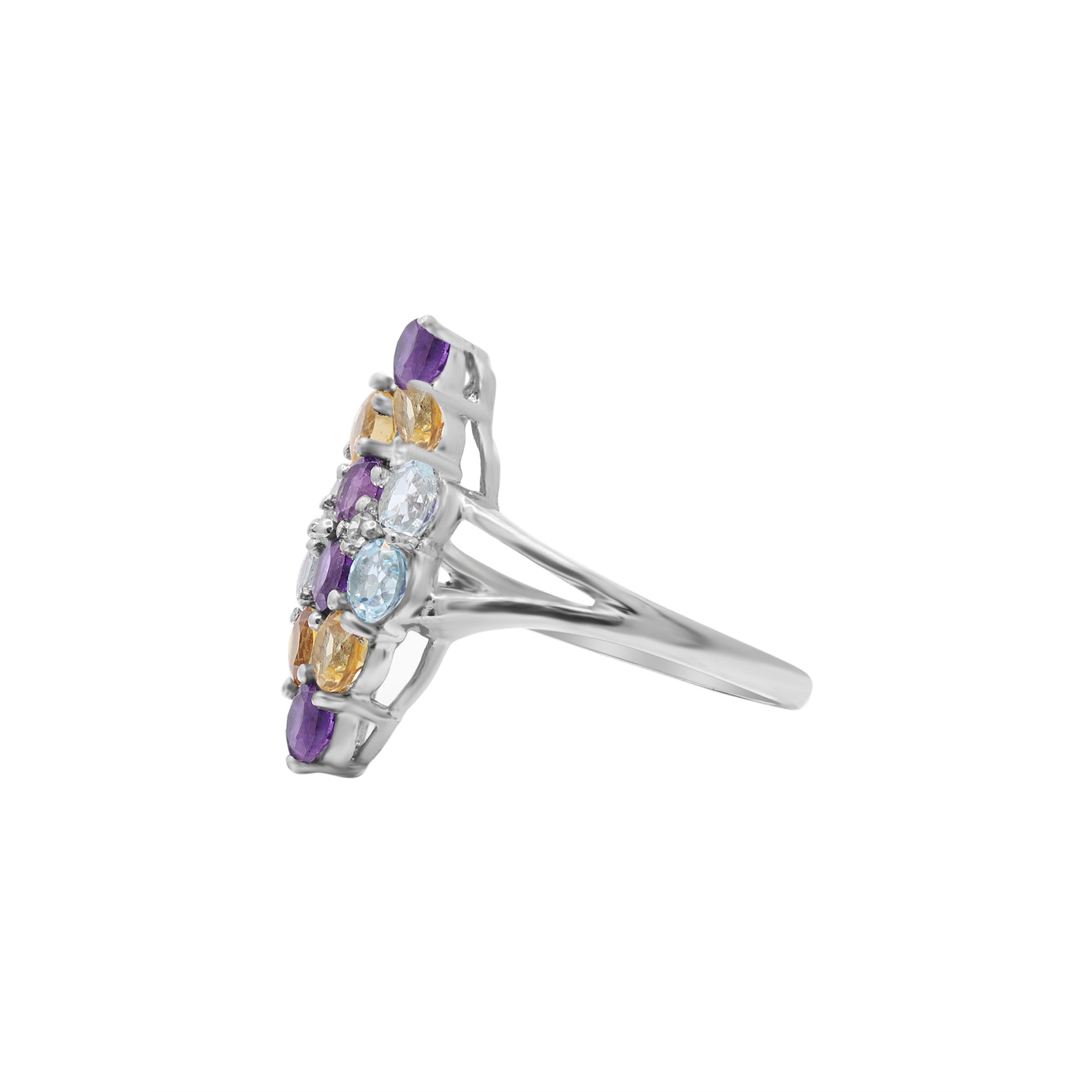 Designer Natural Amethyst, Blue Topaz and Citrine 925 Silver Gold Plated Ring