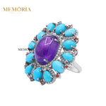 Natural Amethyst, Turquoise With Diamond 925 Sterling Silver Ring
