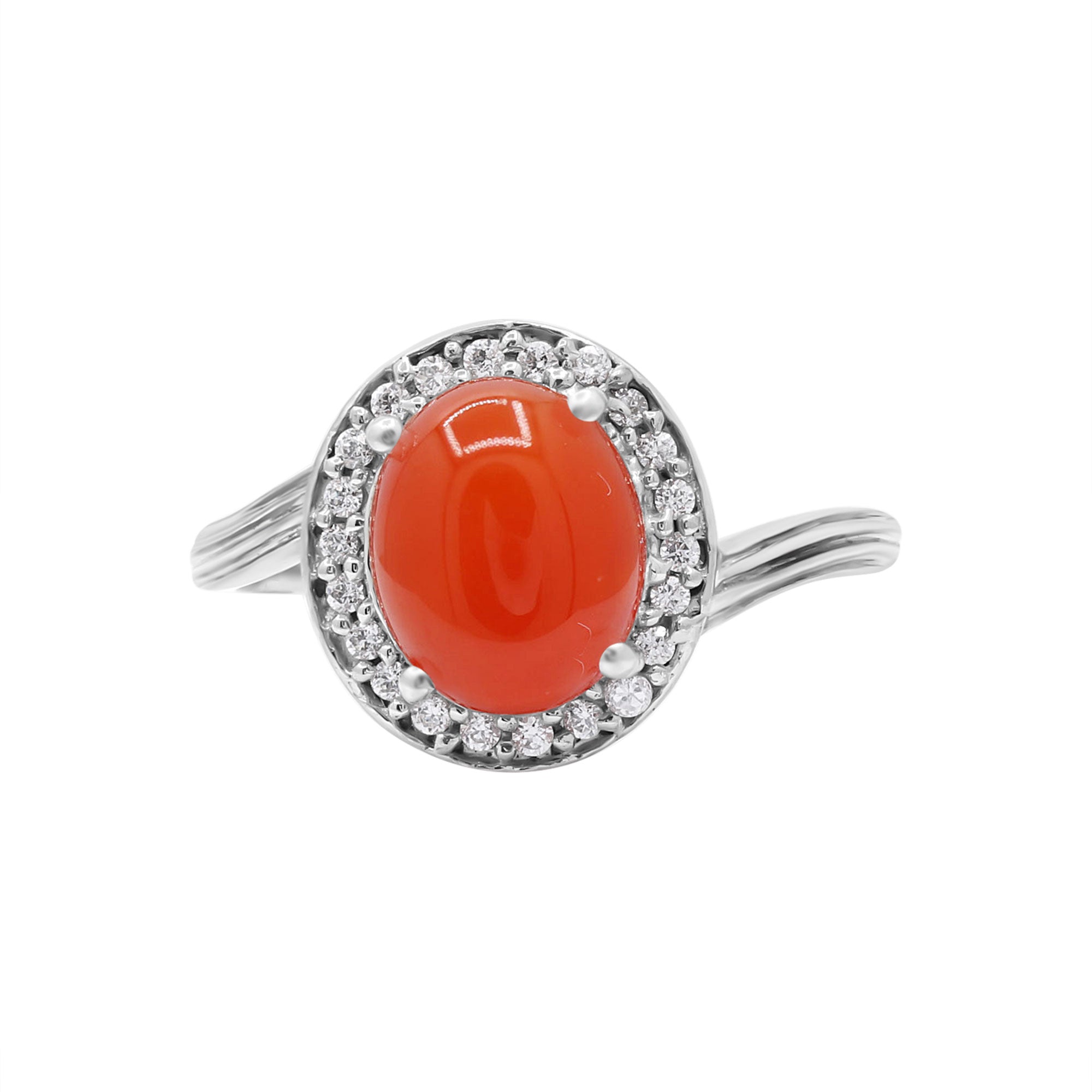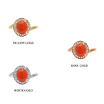 Natural Carnelian and Cubic Zircon Gold Plated 925 Silver Ring