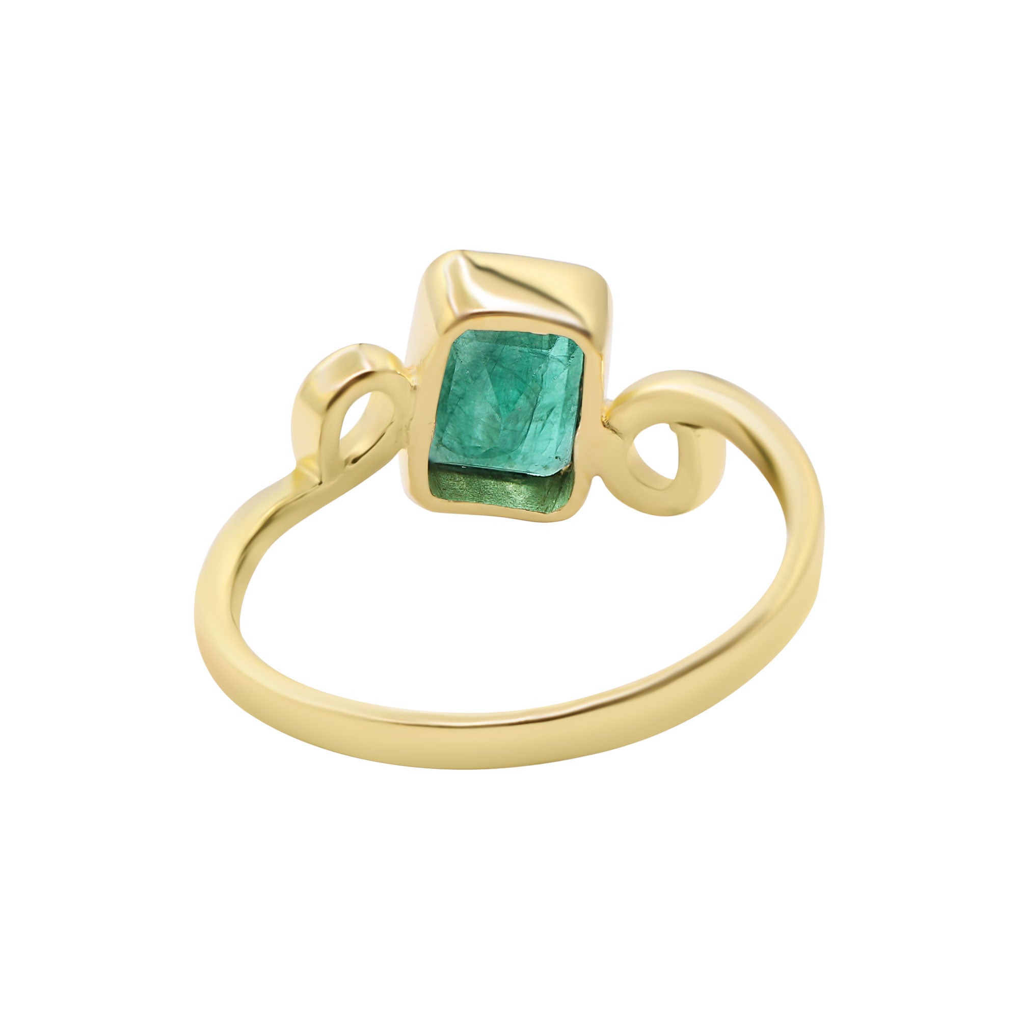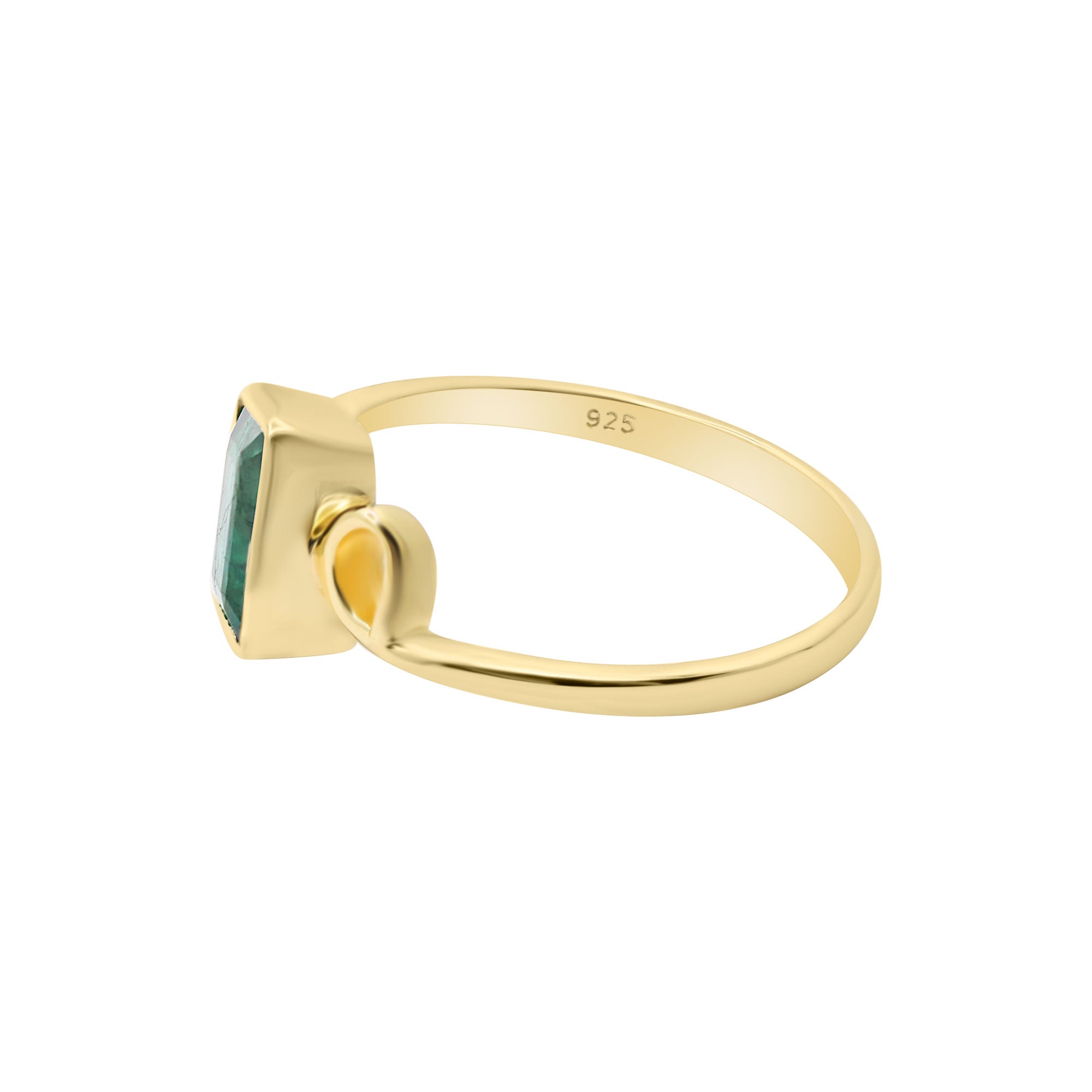 Natural Emerald Gemstone 925 Sterling Silver Gold Plated Ring