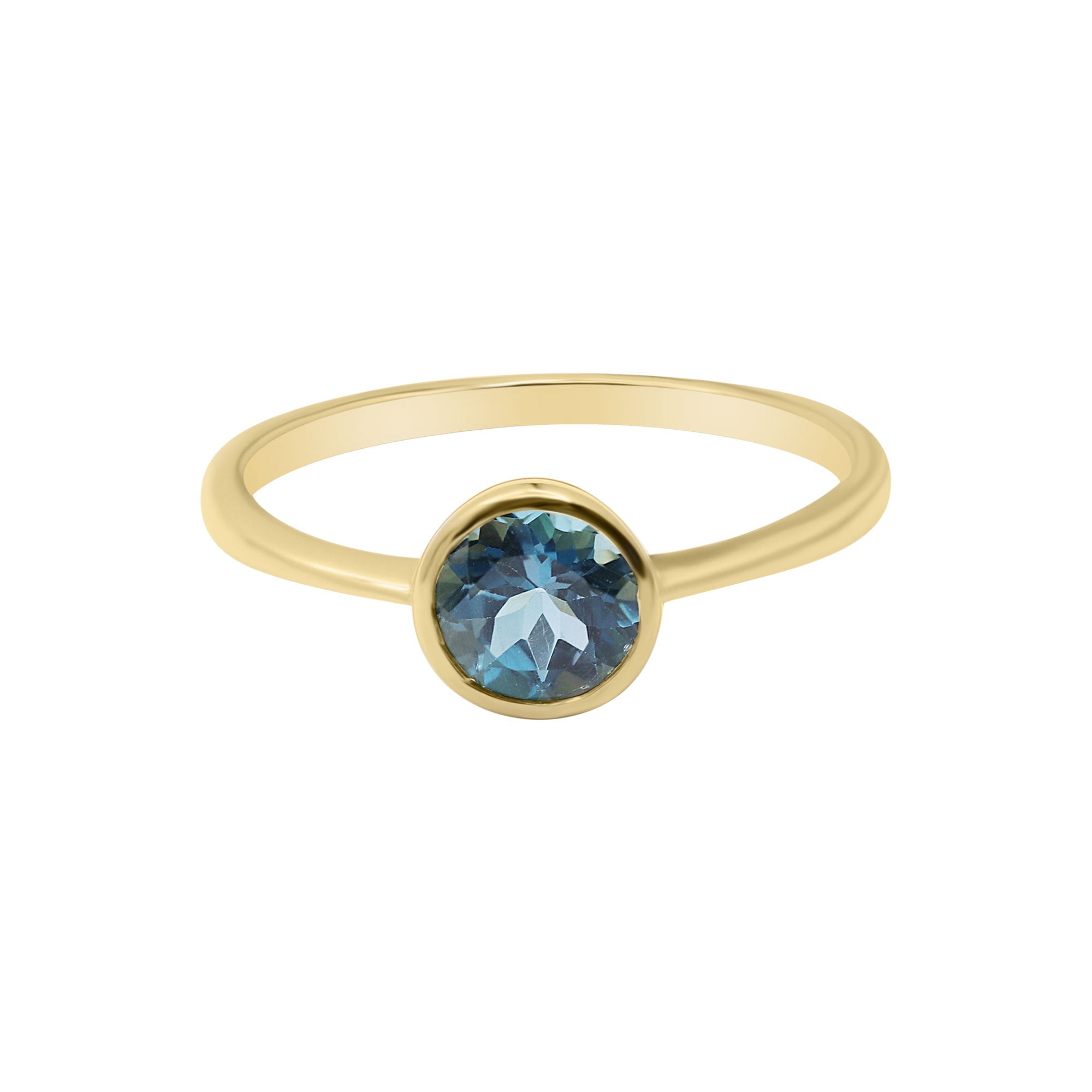 Natural London Blue Topaz Round Cut Gemstone 925 Sterling Silver Gold Plated Ring