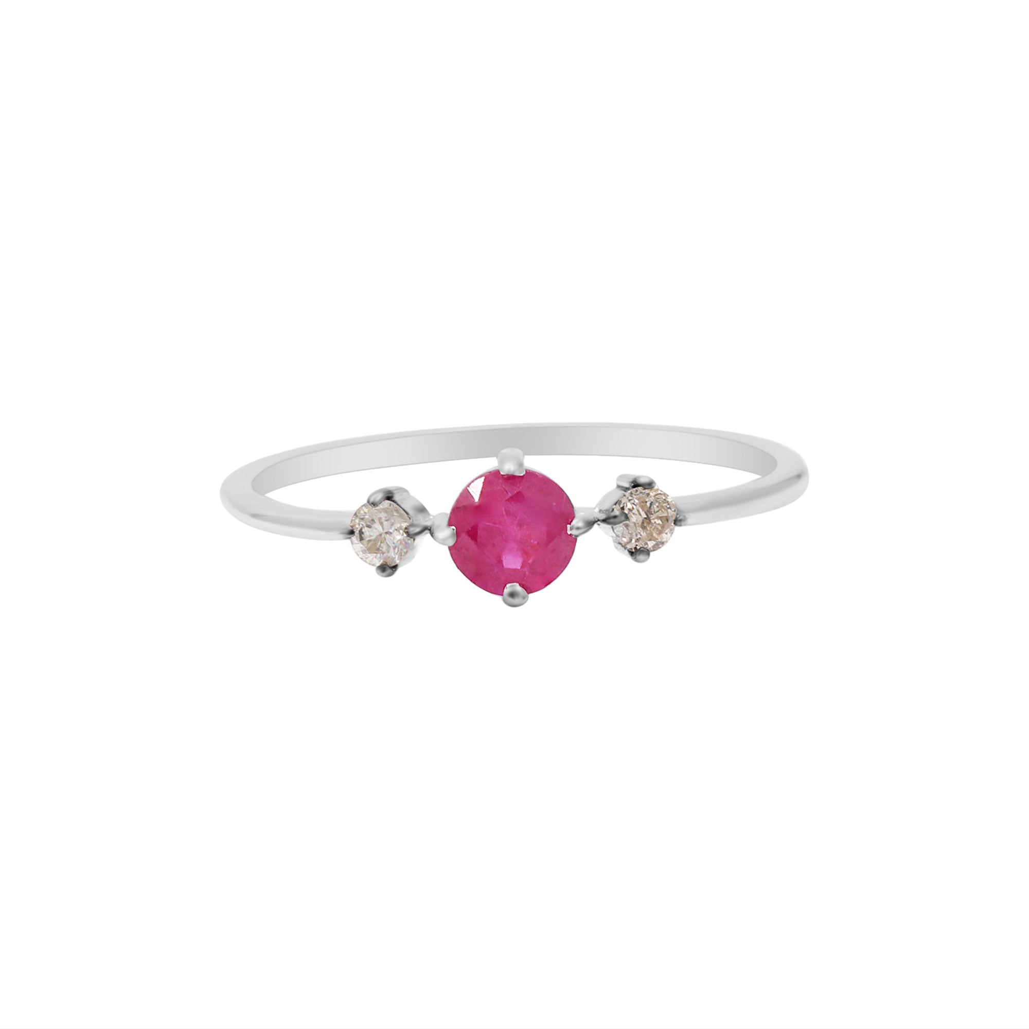 Round Ruby and Diamond Gold Plated Designer 925 Silver Ring