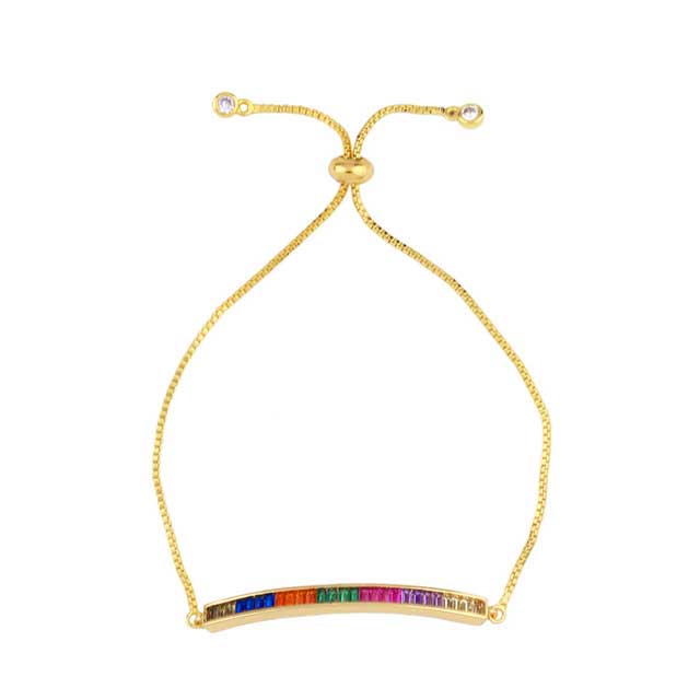 Adjustable Rainbow Color CZ Cubic Zirconia Bezel Setting Bracelets