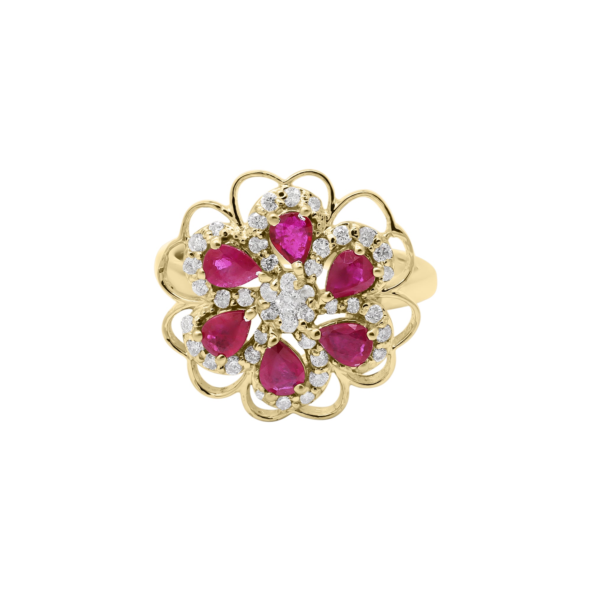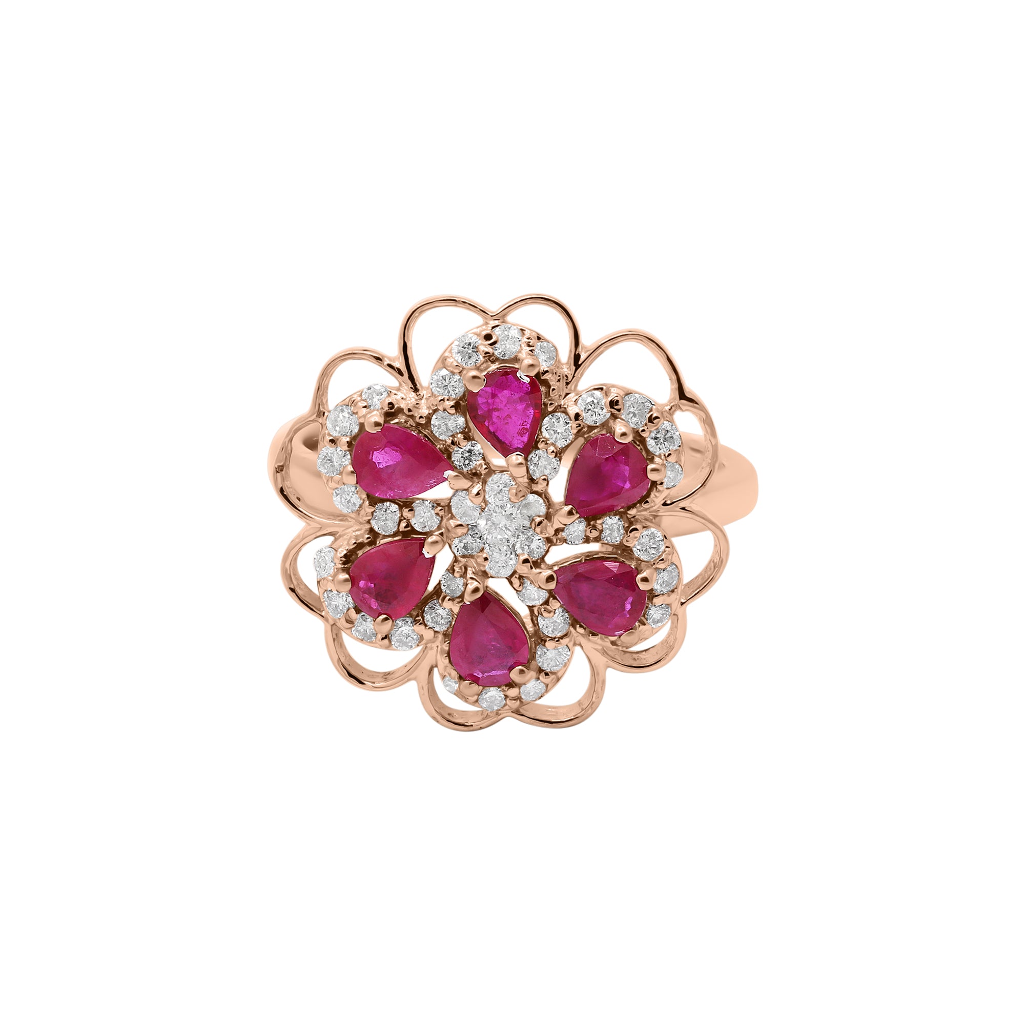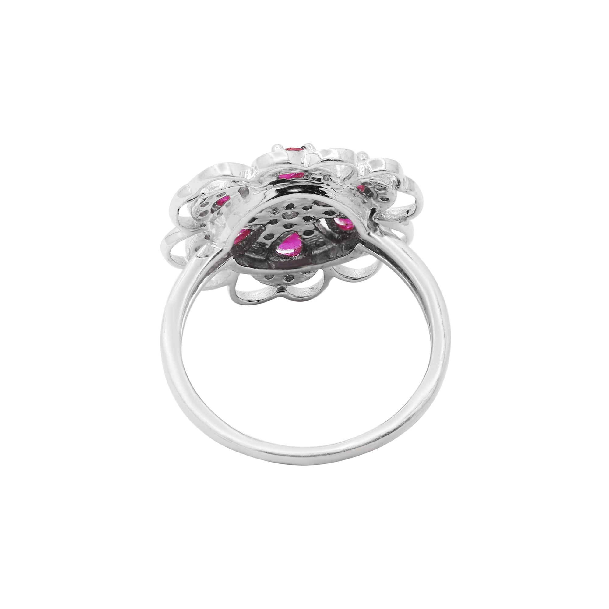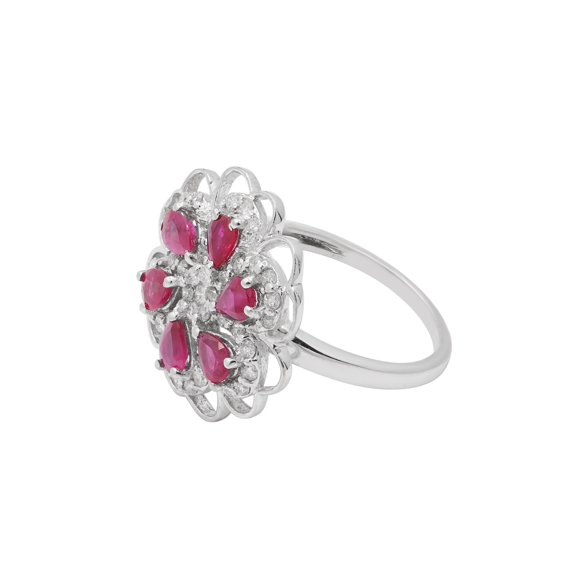 Natural Ruby Gemstone and Diamond 14k White Gold Beautiful Flower Ring For Womens