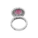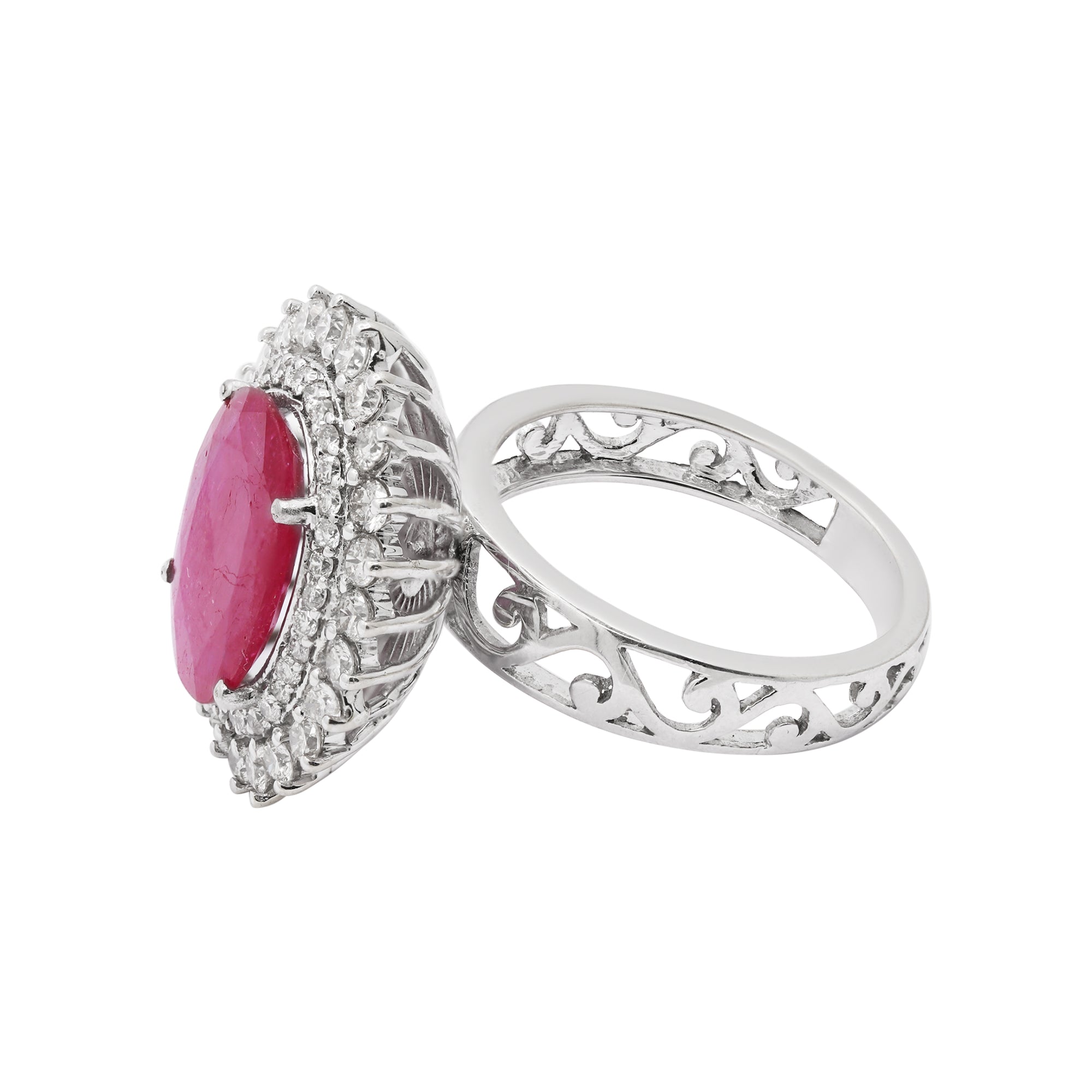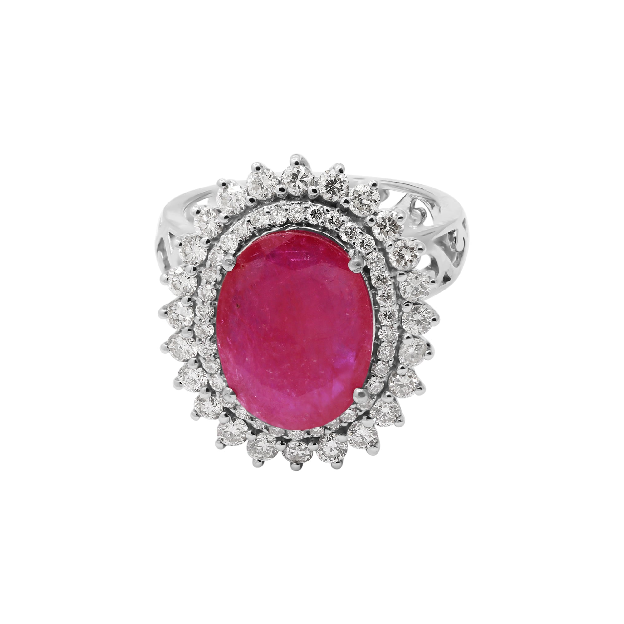 Gorgeous Natural Oval Shaped Ruby Gemstone and Diamond Ring In 14k White Gold