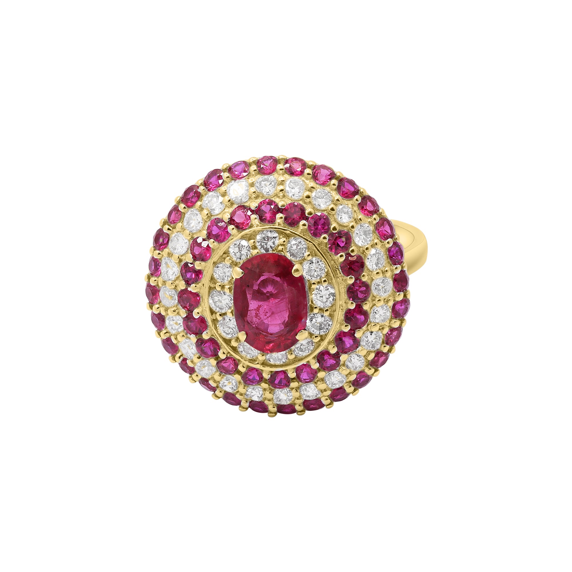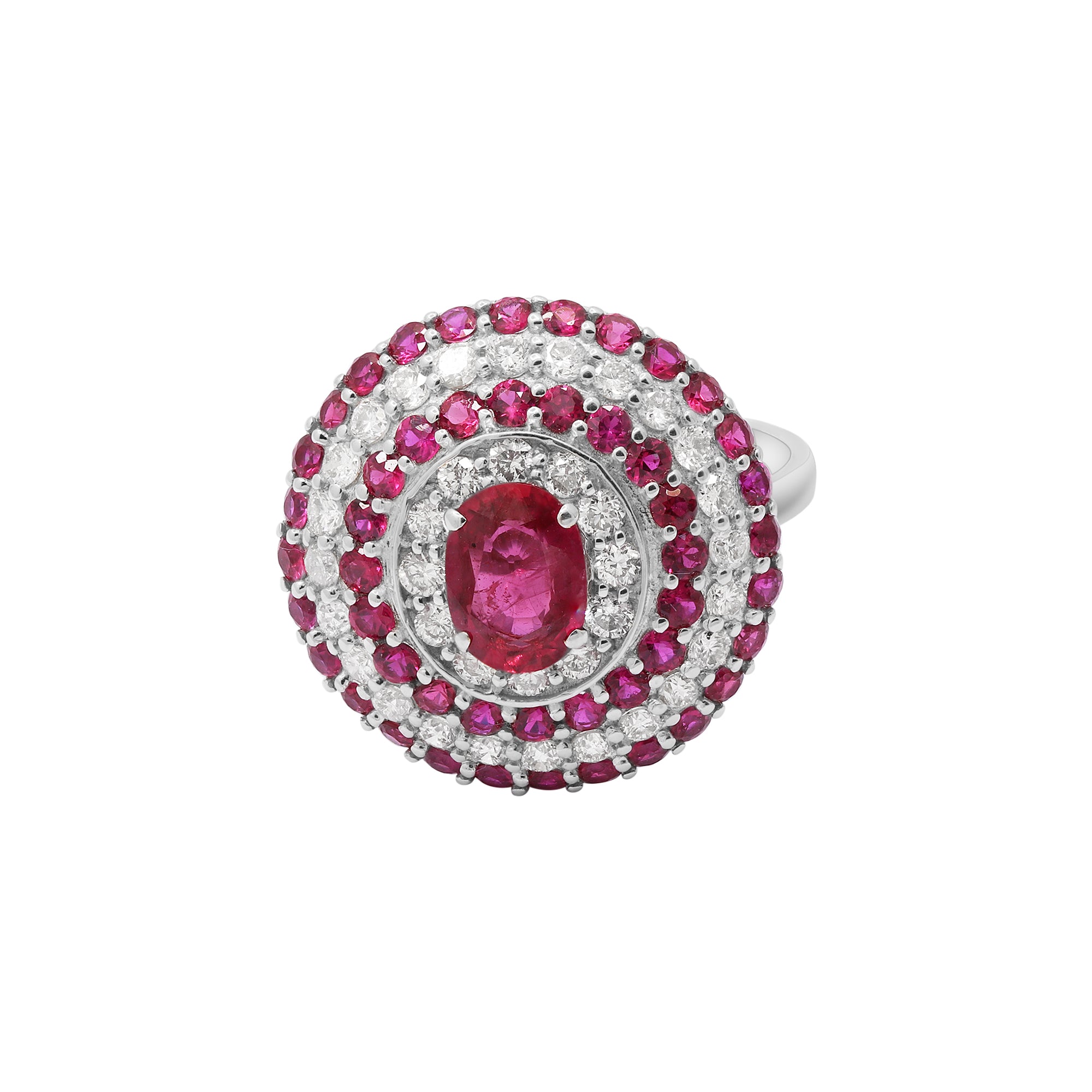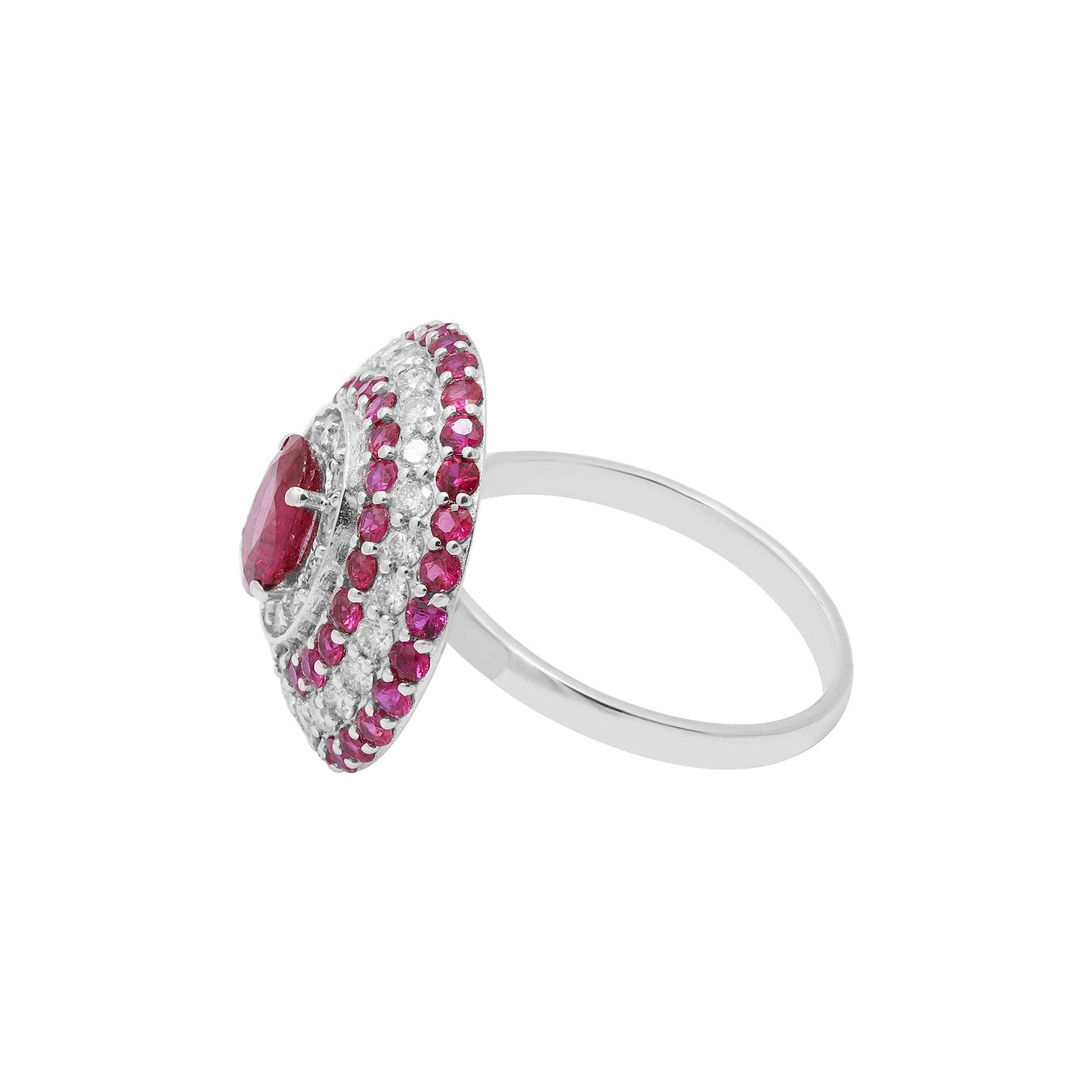 Precious Solid 18k White Gold Natural Ruby Gemstone With Diamond Floral Ring For Her