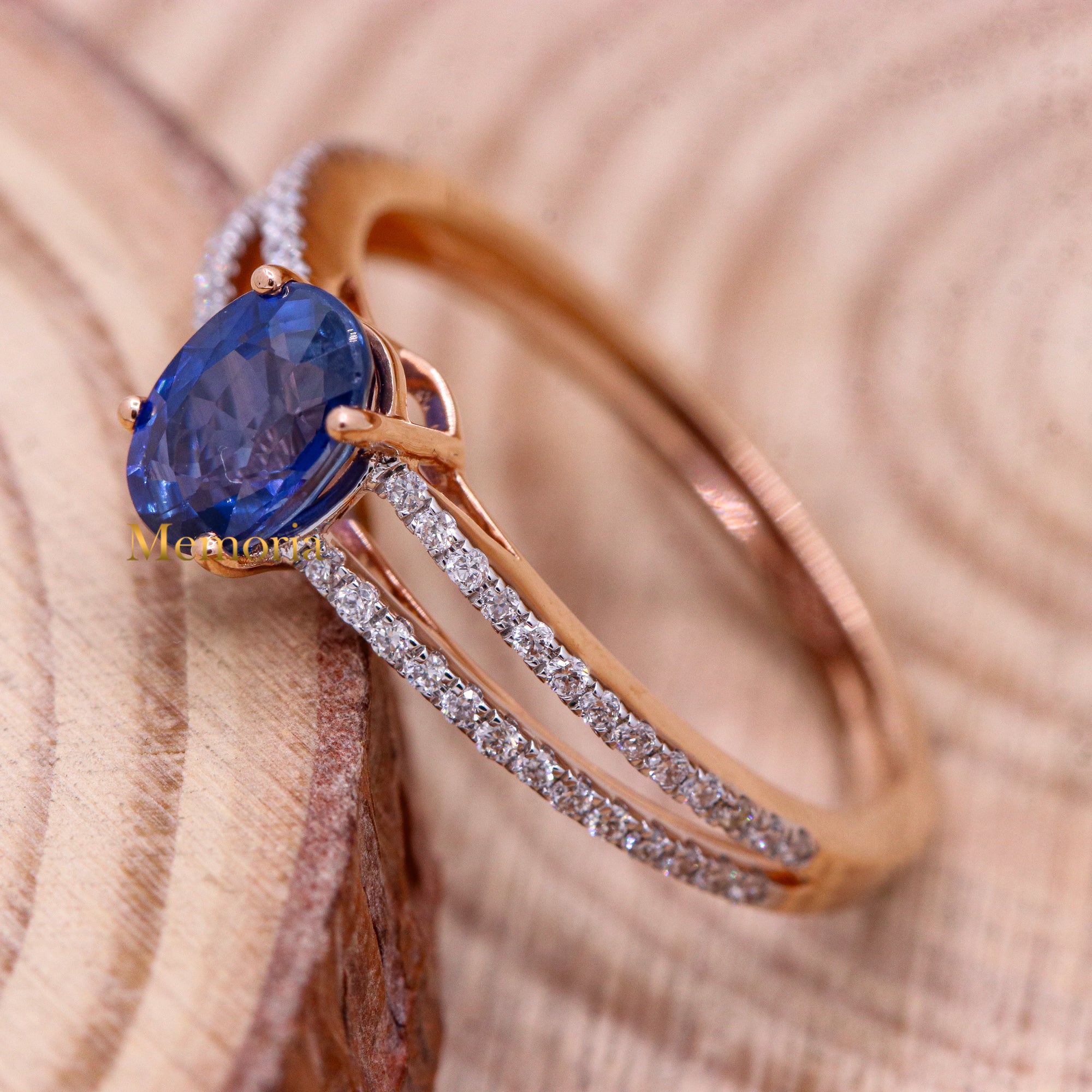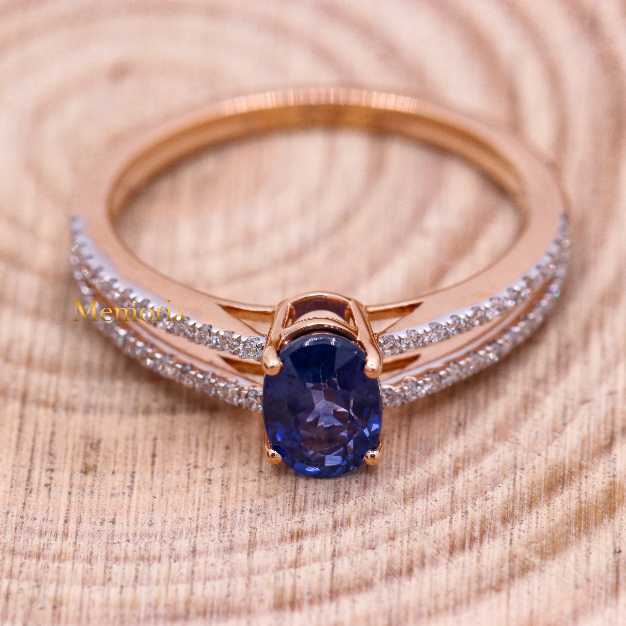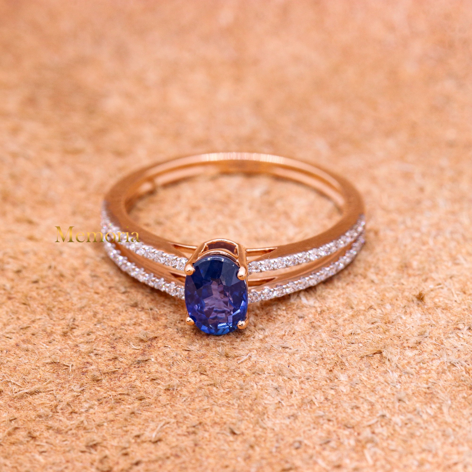 Buy Best Quality Certified Designer Natural Blue Sapphire Oval Shaped Faceted Cut Spiritual Chakra Healing Gemstone With Diamond Ring In 18k Rose Gold