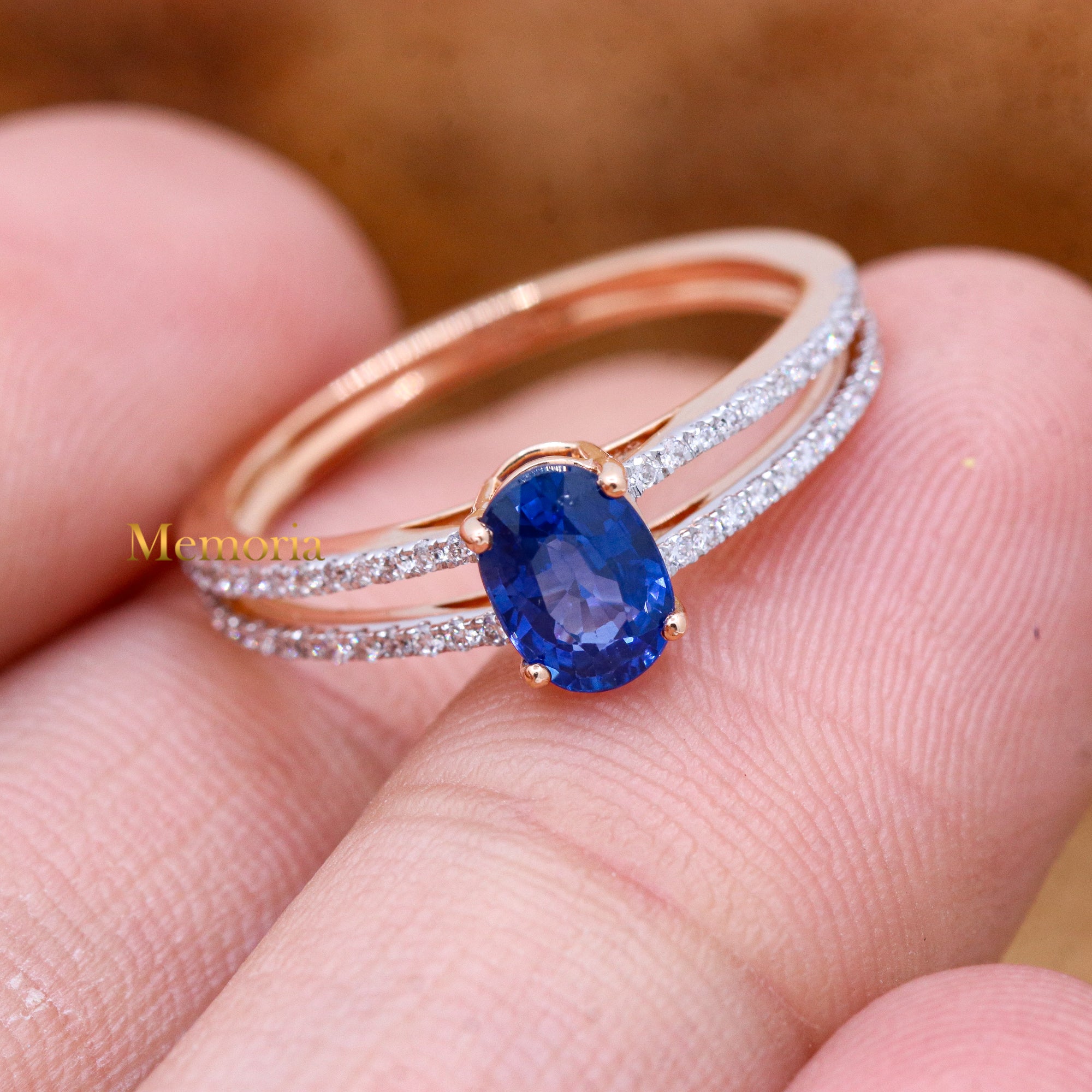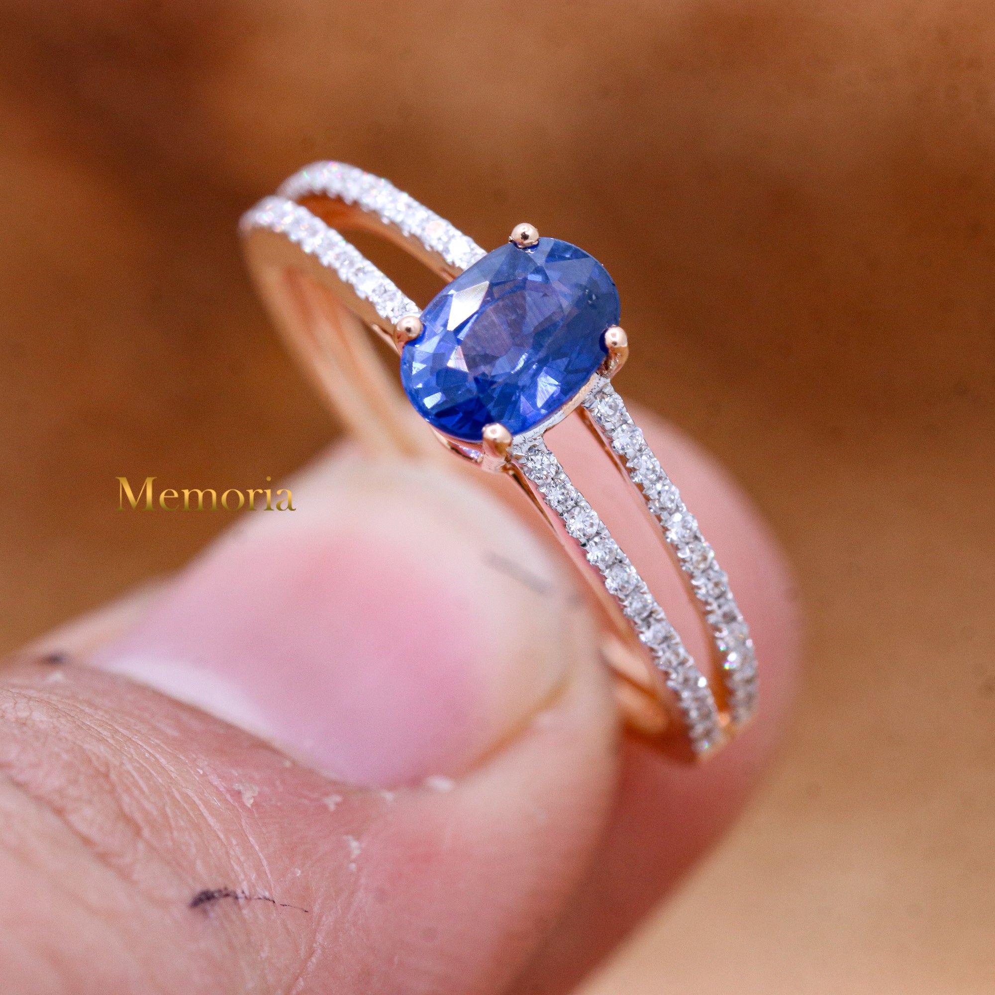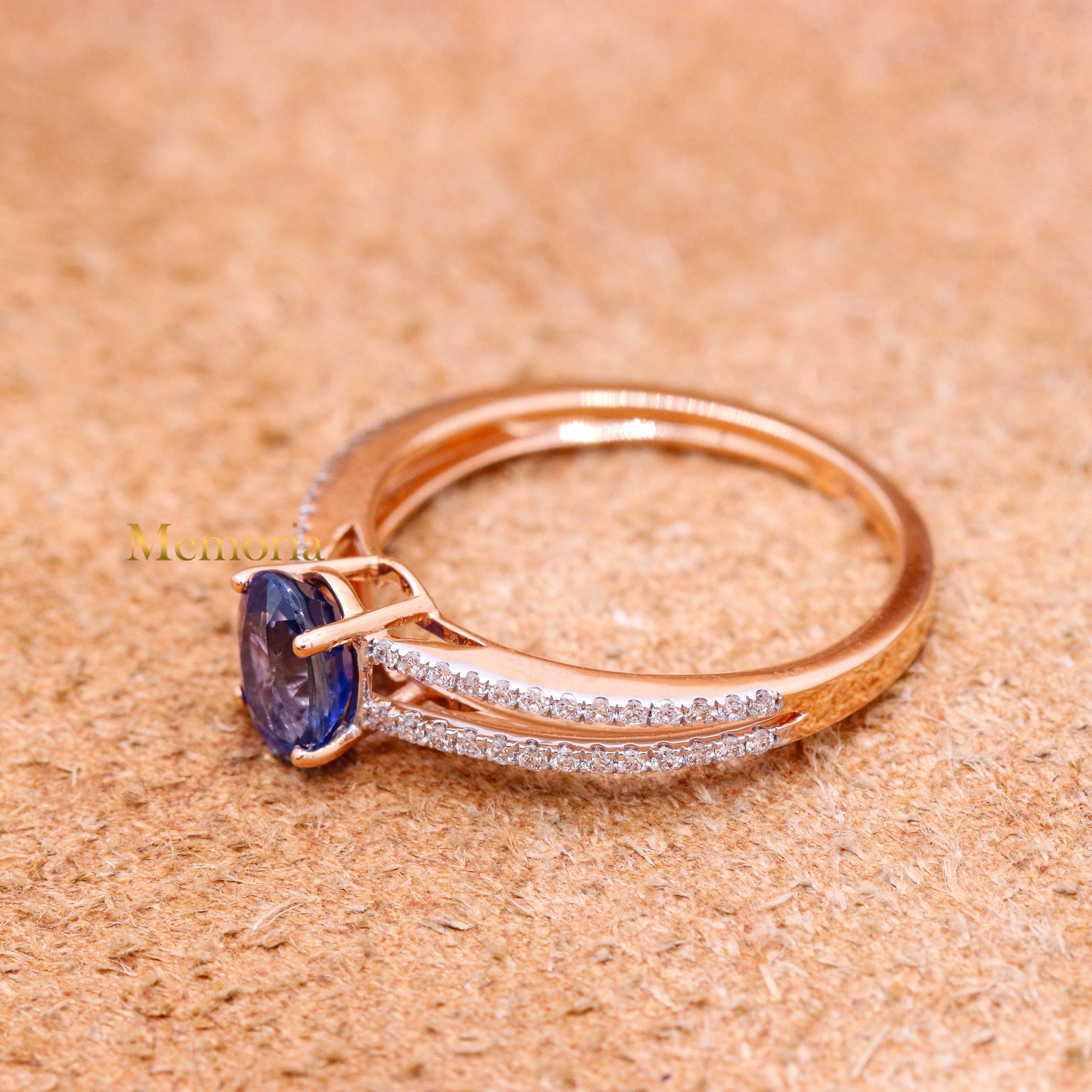 Buy Best Quality Certified Designer Natural Blue Sapphire Oval Shaped Faceted Cut Spiritual Chakra Healing Gemstone With Diamond Ring In 18k Rose Gold