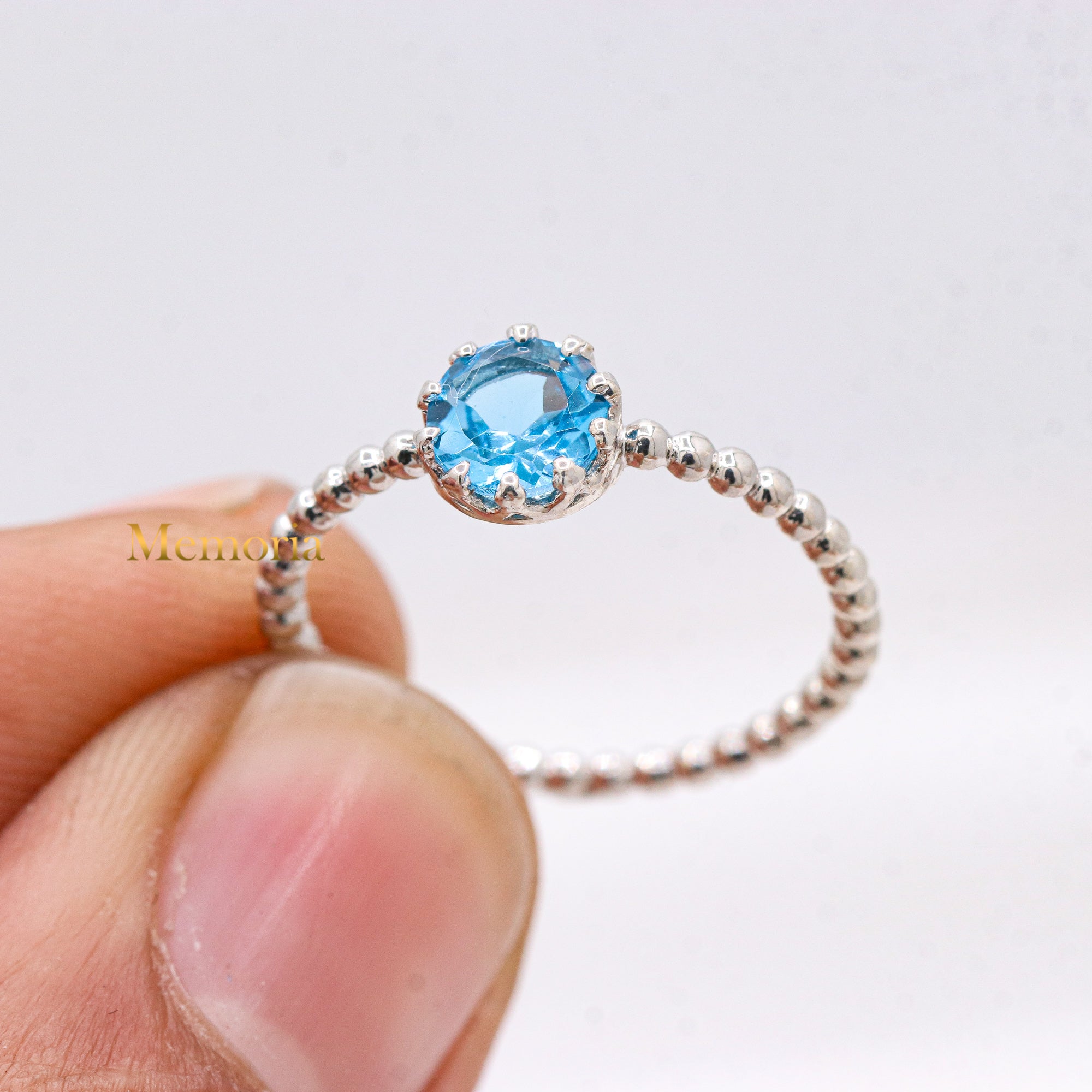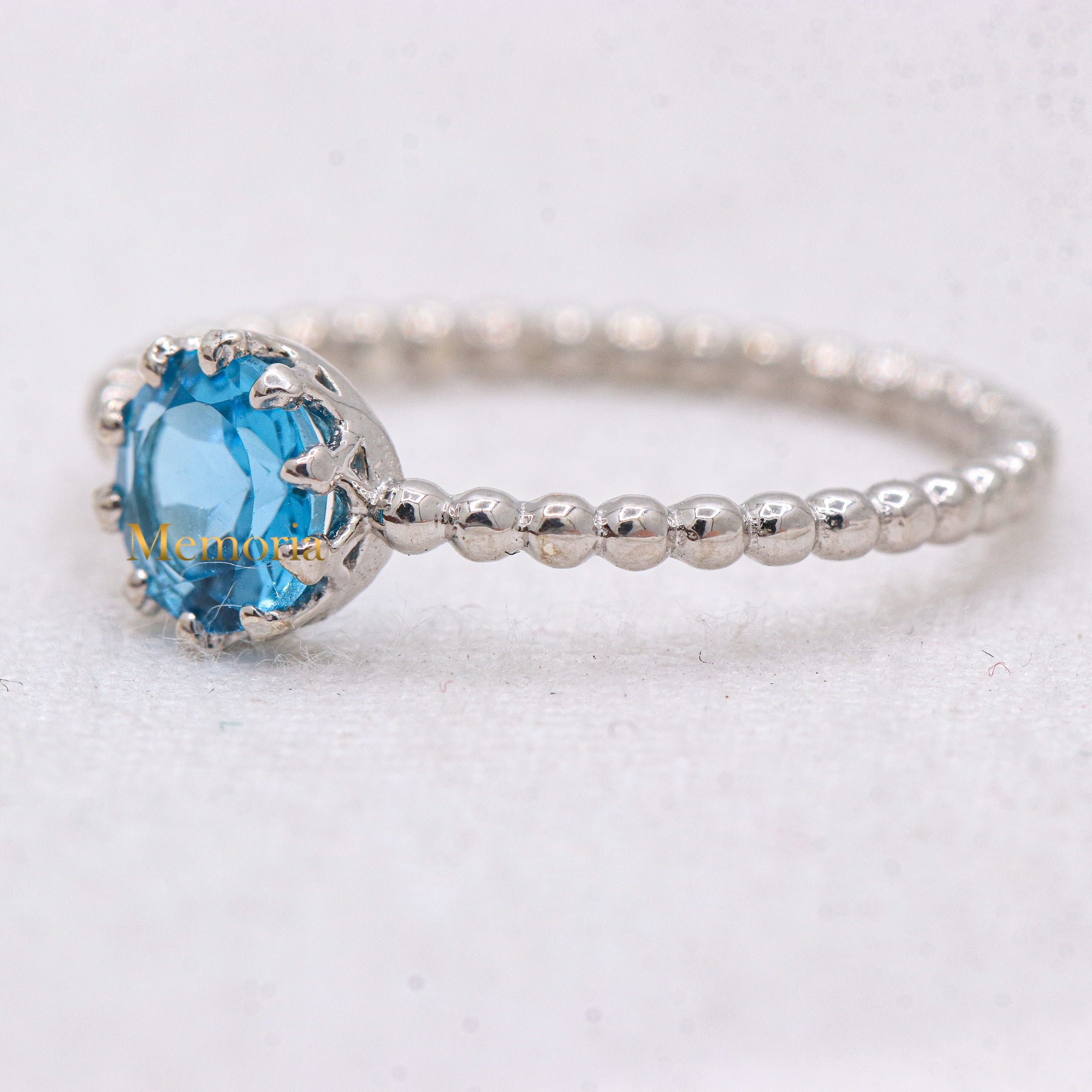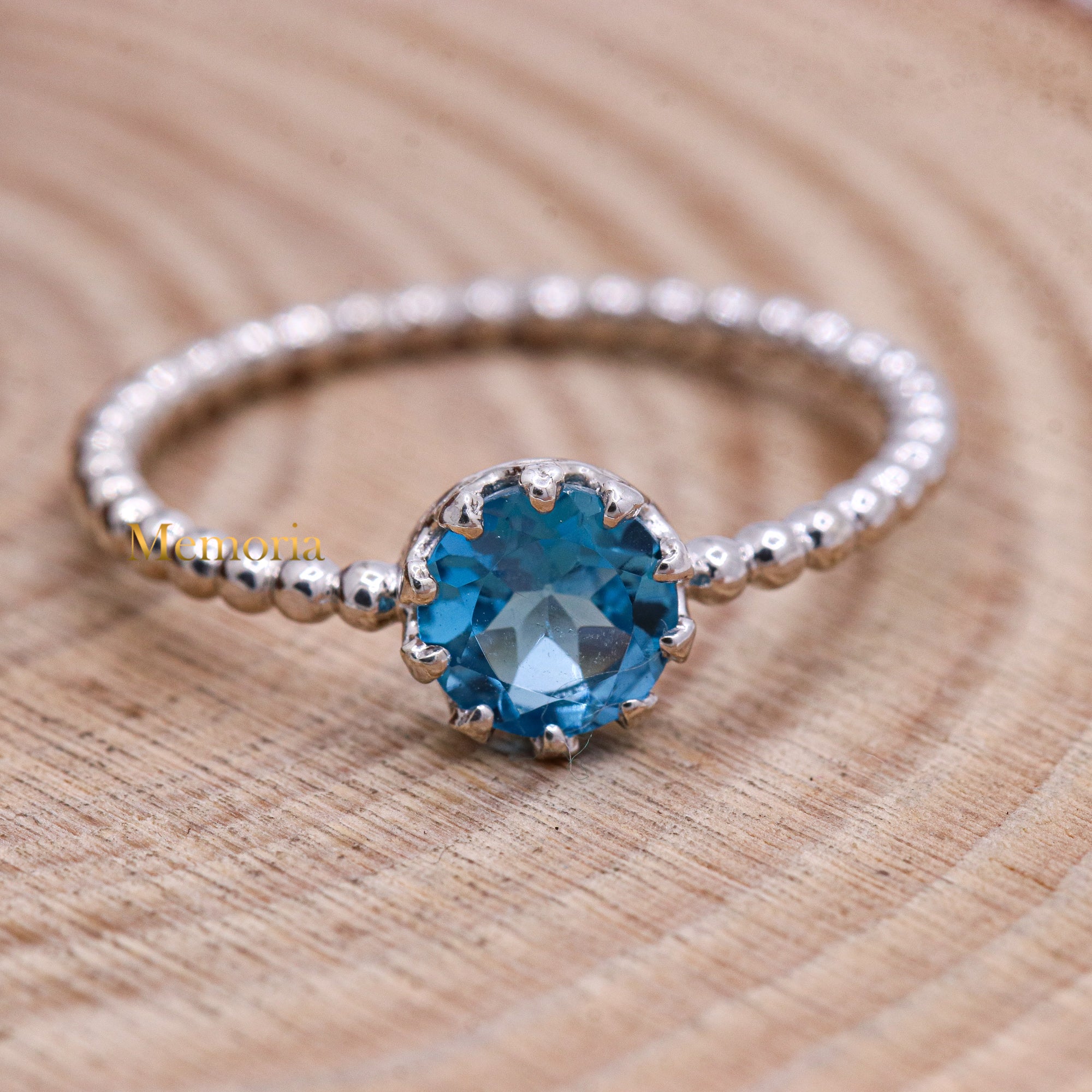 Natural Blue Topaz 925 Sterling Silver Beaded Ring