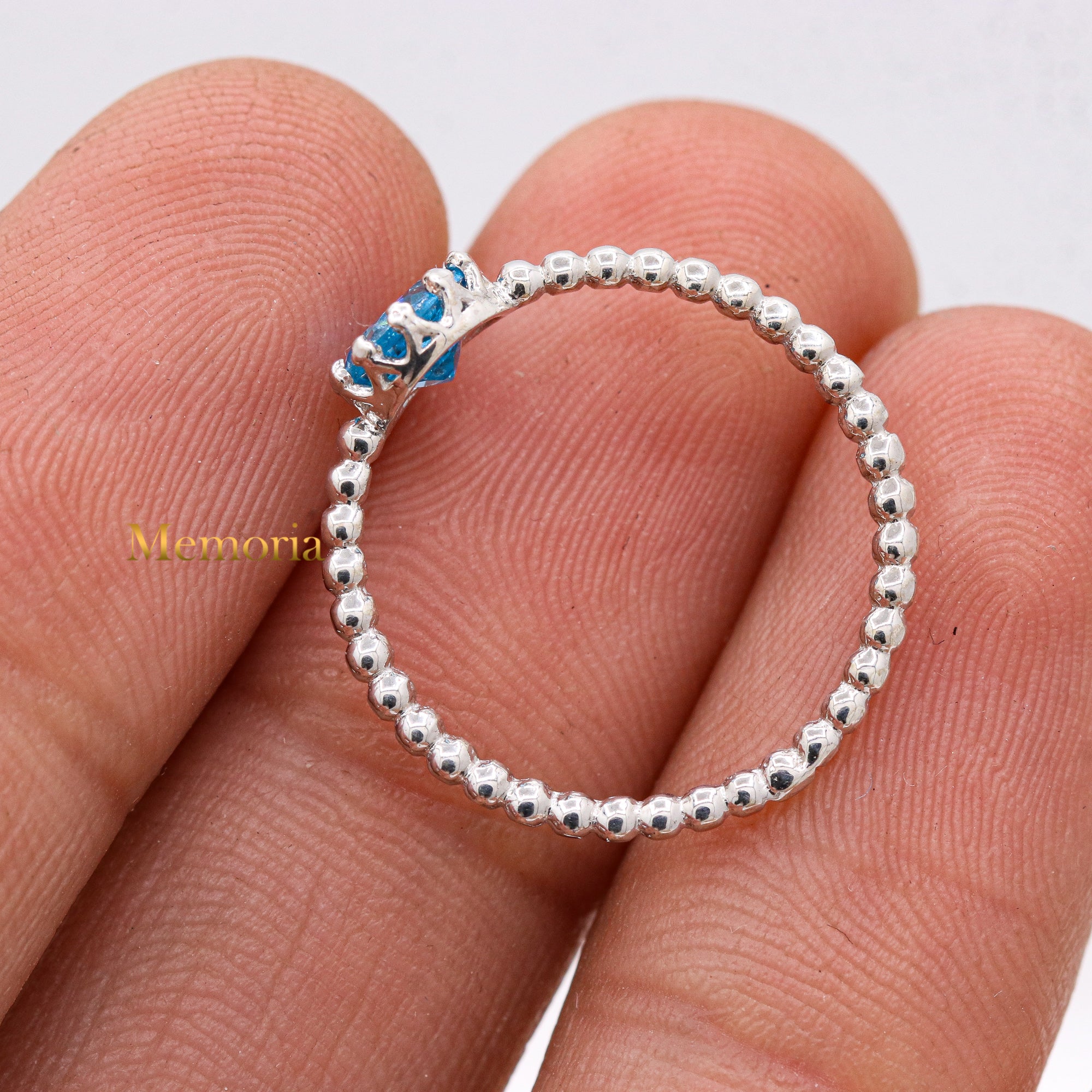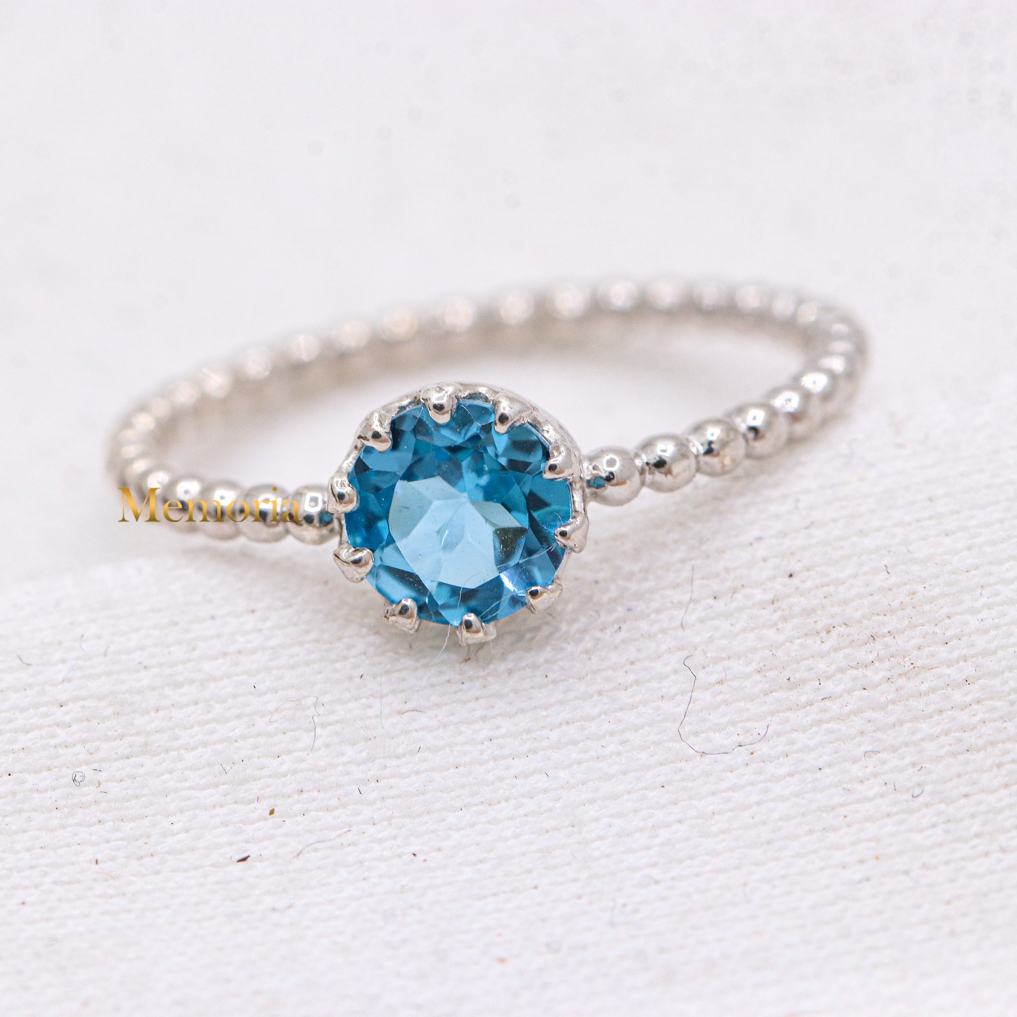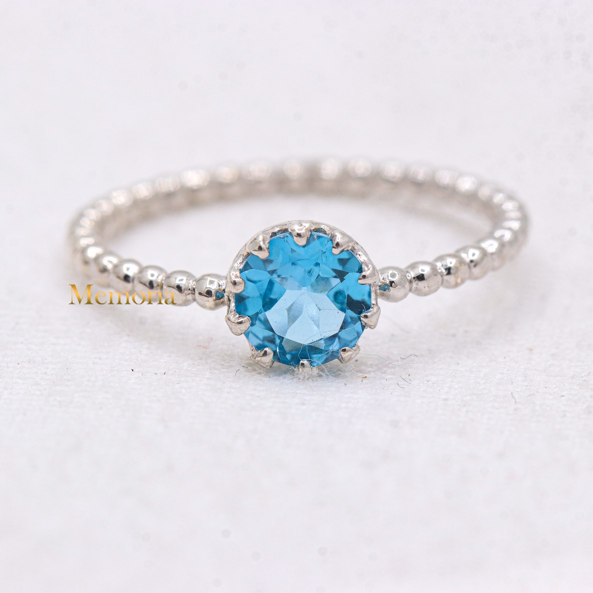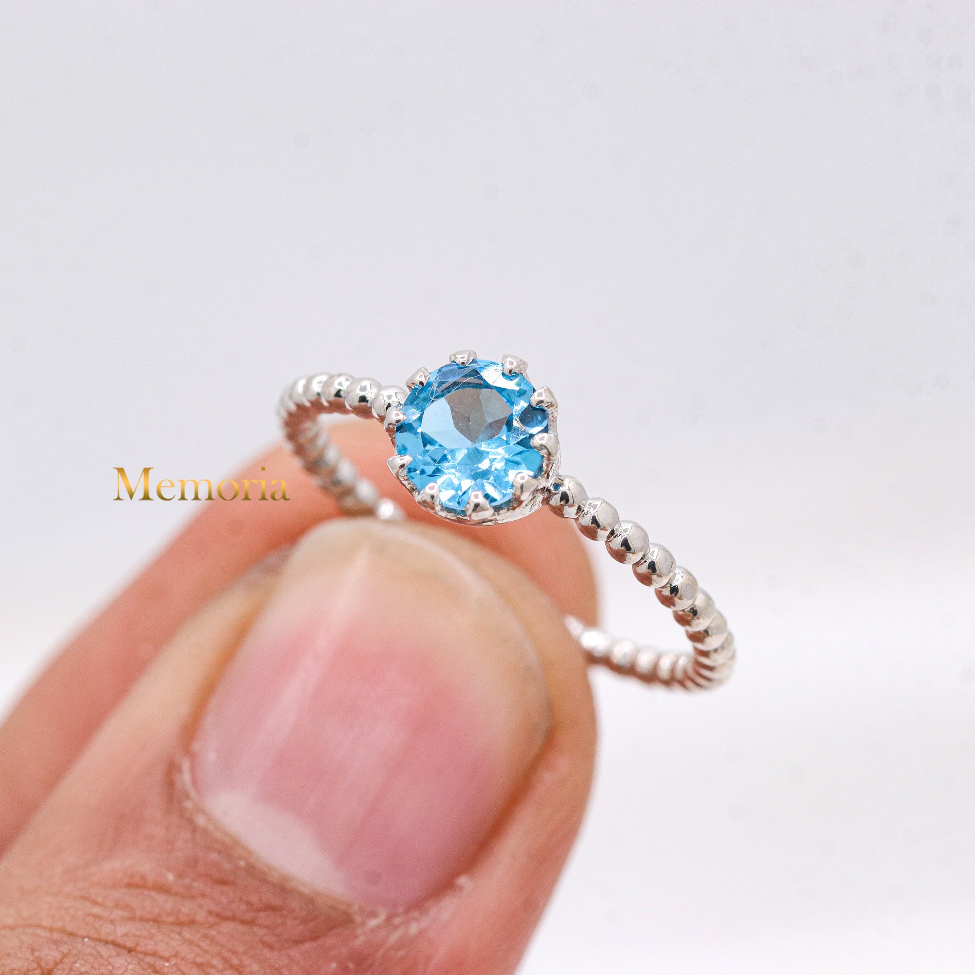 Natural Blue Topaz 925 Sterling Silver Beaded Ring