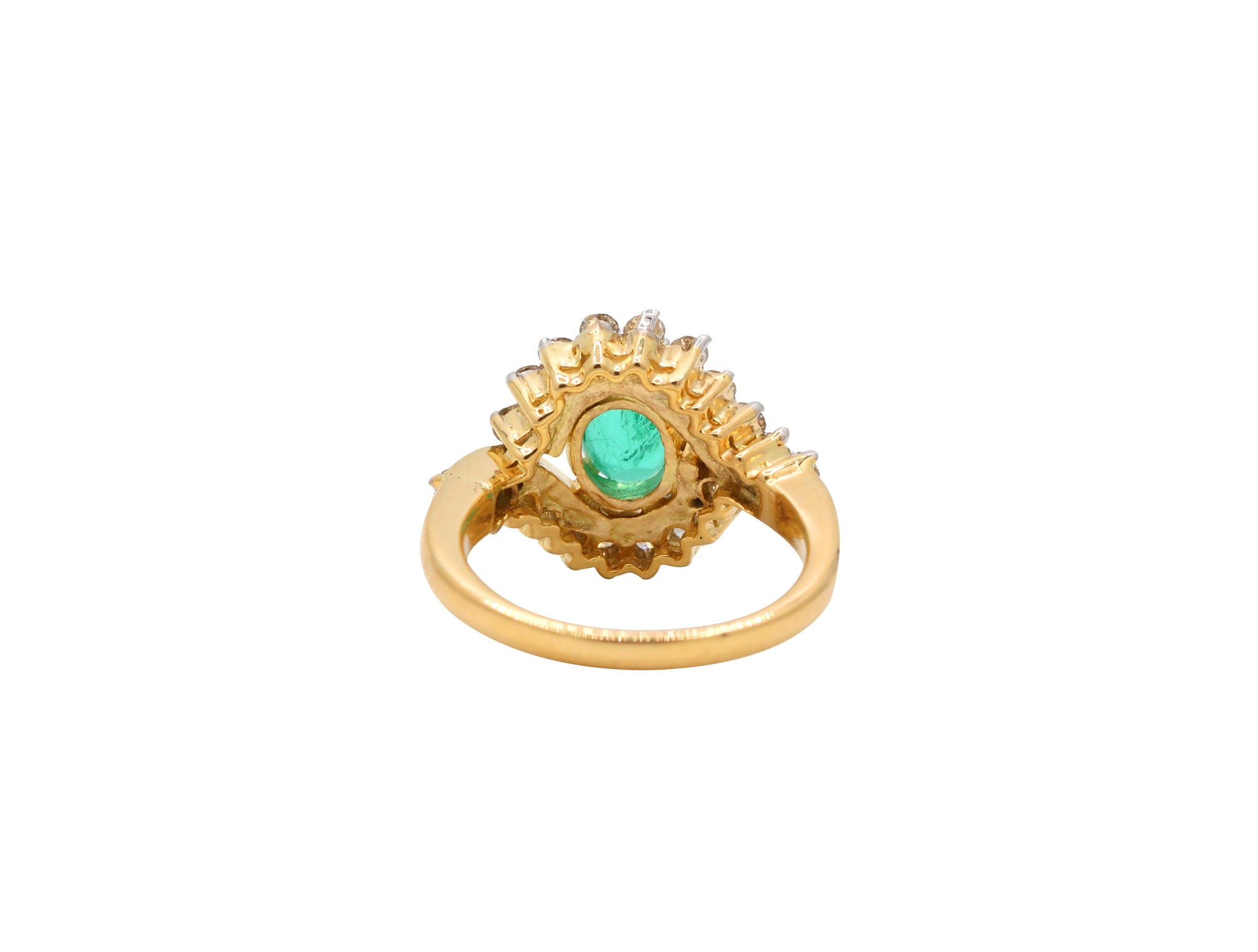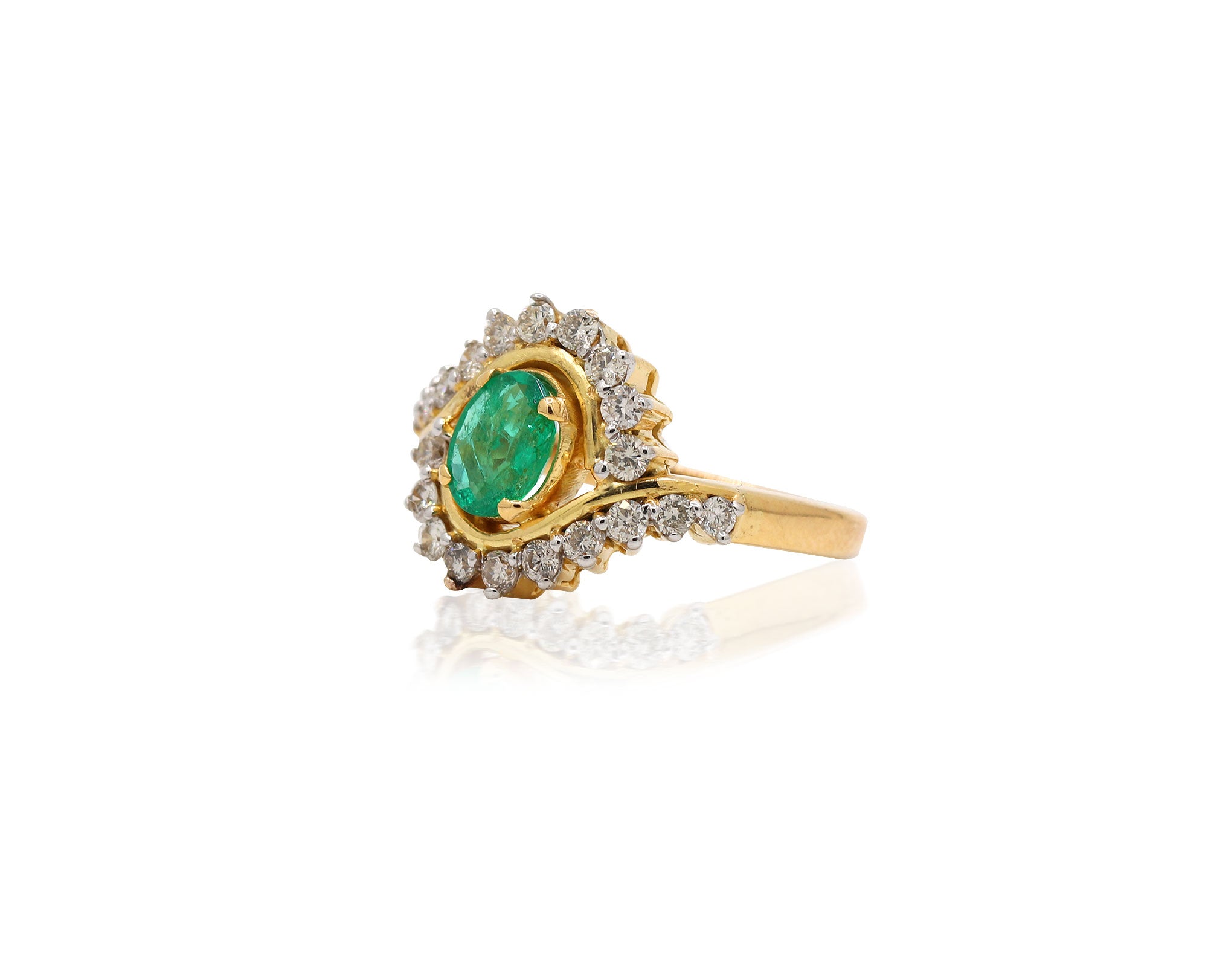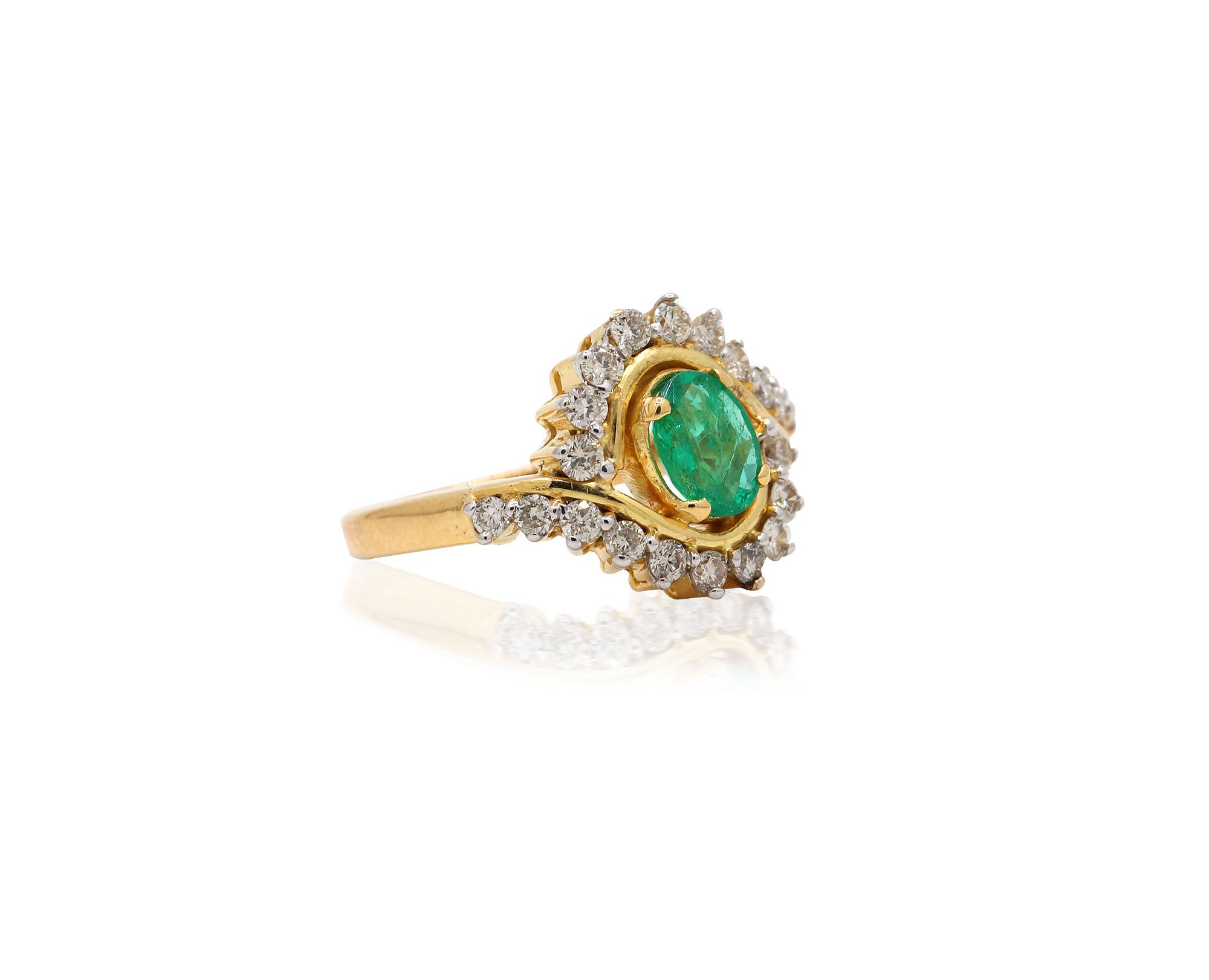 14 Carat Gold Natural Emerald Oval Cut Gemstone Diamond Ring