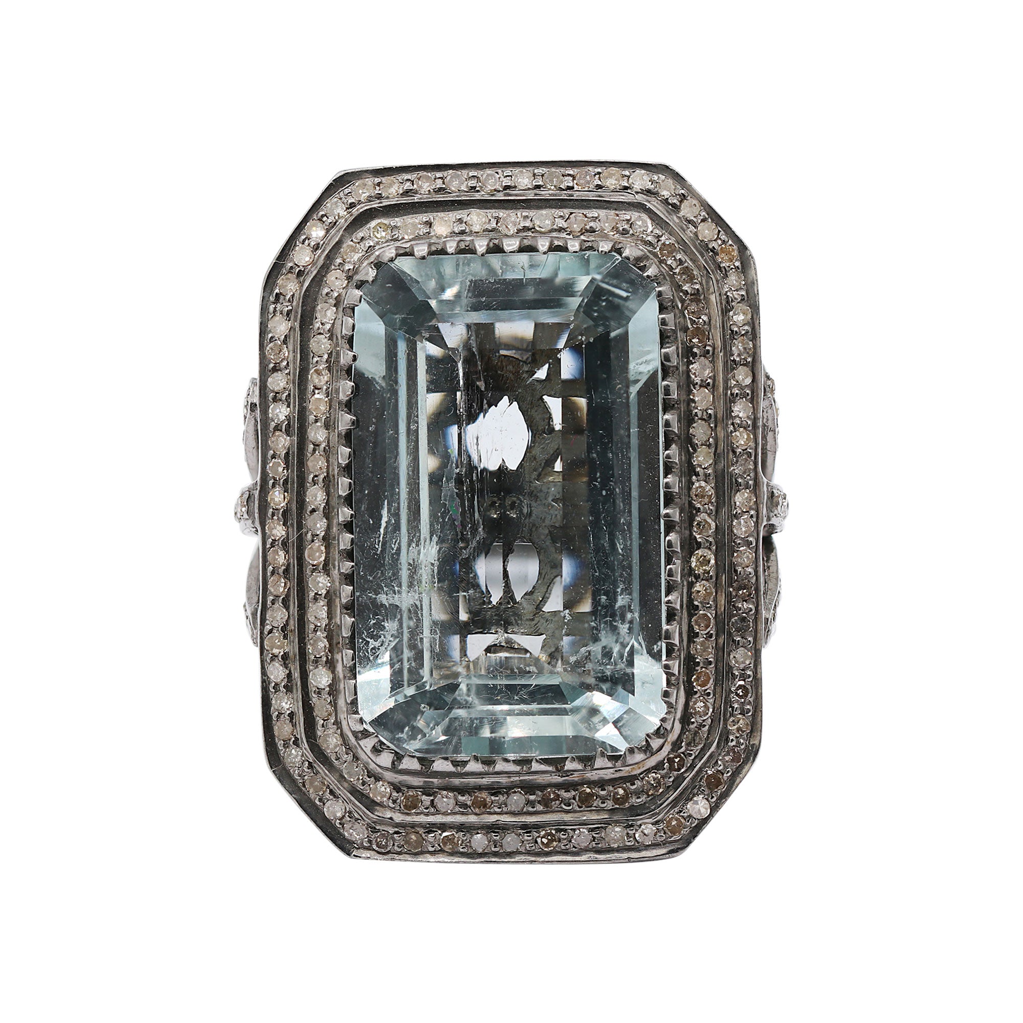Item Type: Aquamarine and Diamond 925 Silver Ring