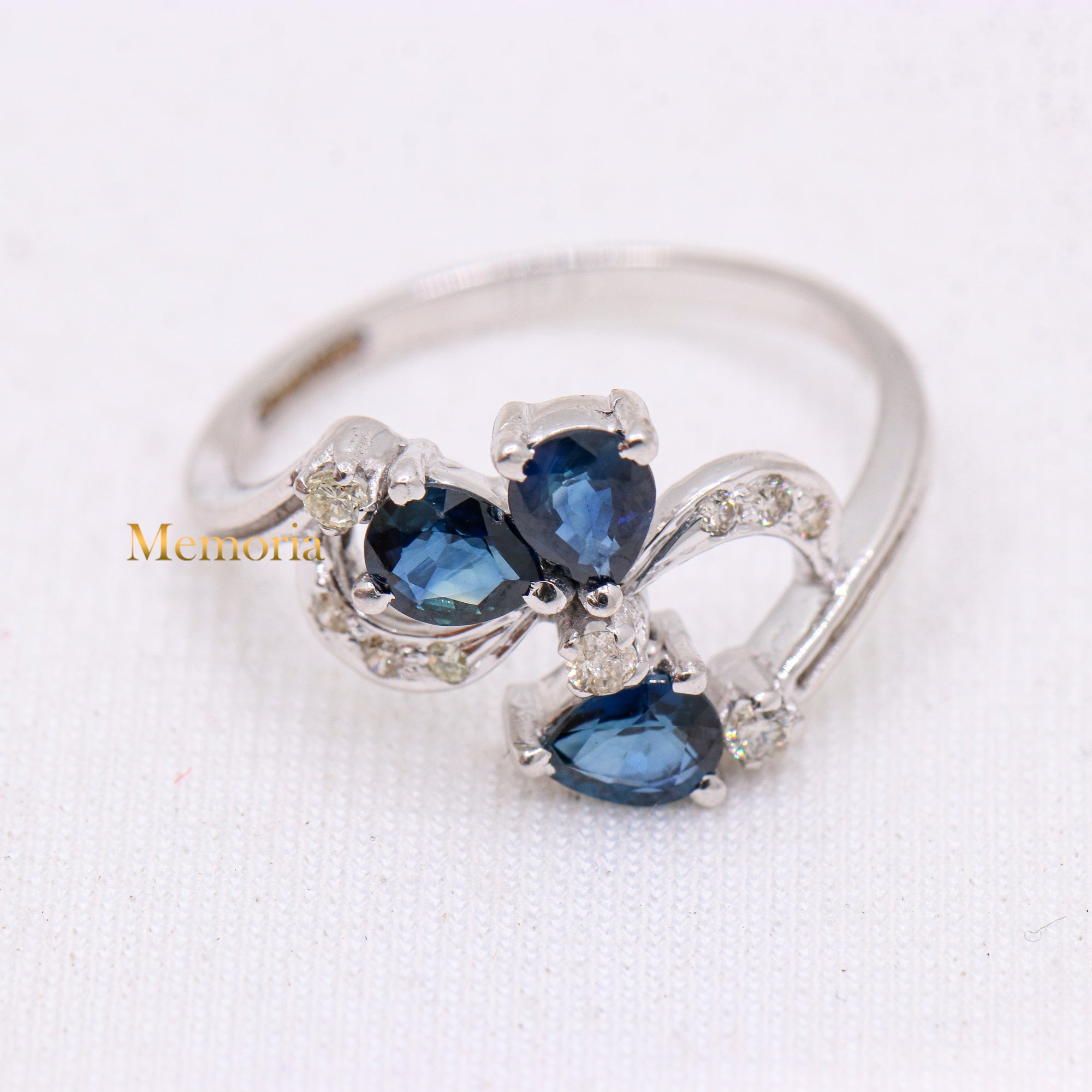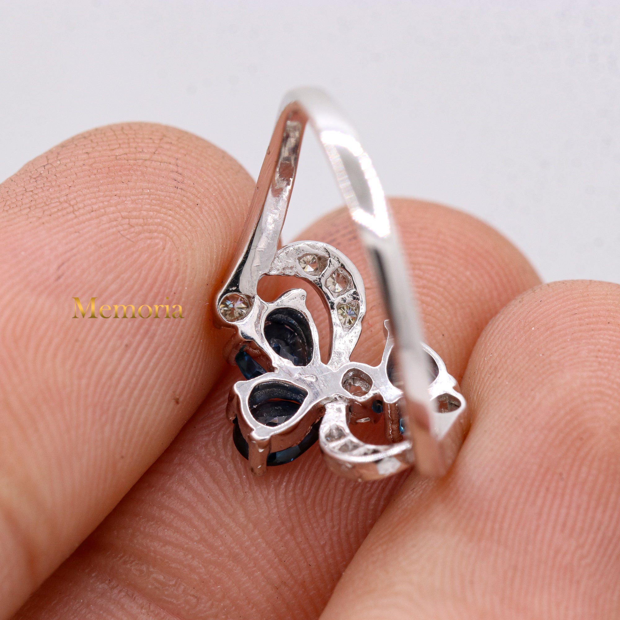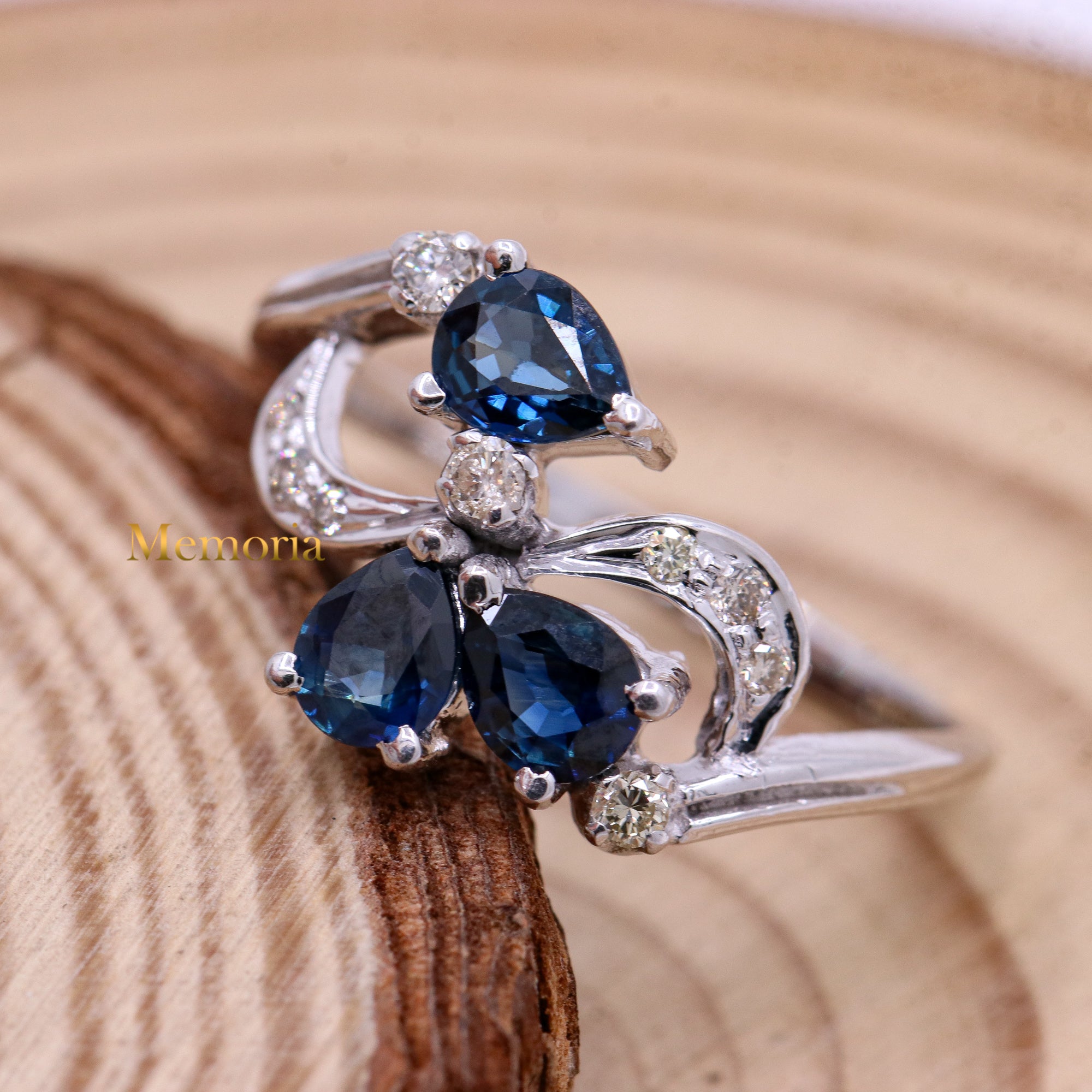Buy Best Quality Certified Designer Natural Blue Sapphire Pear Shaped Faceted Cut Spiritual Chakra Healing Gemstone With Diamond Ring In 18k White Gold